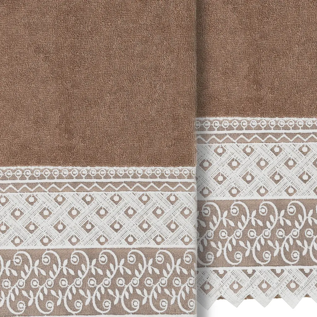 Authentic Hotel And Spa Turkish Cotton Aiden 2Pc White Lace Embellished Bath Towel Set - Latte