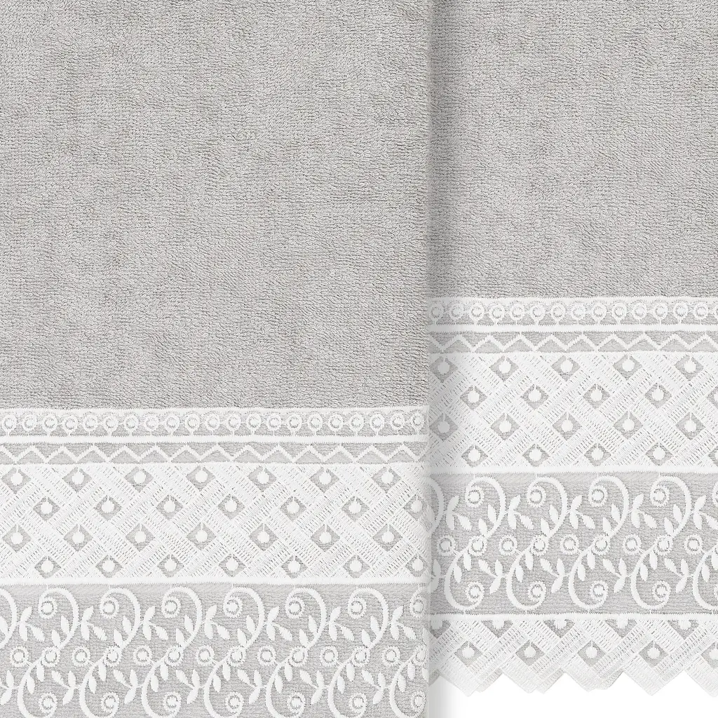 Authentic Hotel And Spa Turkish Cotton Aiden 2Pc White Lace Embellished Bath Towel Set - Light Gray