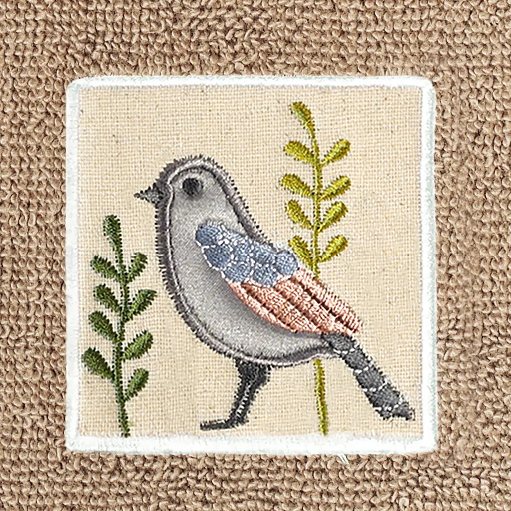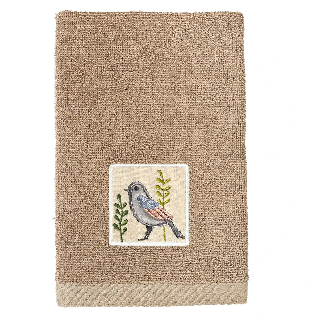 Your decorations are not complete without whimsical embroidered towels for the comfort of your family and guests. The Belinda towels feature charming applique birds and are trimmed with a muslin border. Cloud soft and super absorbent, these luxurious, durable towels keep their plush appearance after washing. This collection is available in 8 elegant colors: White, Beige, Blush, Aqua, Silver, Cocoa, Charcoal and Marine. The Belinda Towel Collection brings a country spirit and richness to your home decor and makes a great gift!Embroidered Birds design100% Premium Turkish CottonSuperbly absorbent and quick dryingAvailable in 8 elegant colorsMachine wash cold, No bleach, line dry or dry cleanSet includes 1 bath towel (27" x 54") / 1 hand towel (16" x 30") / 1 fingertip towel (11" x 18")Made in TurkeyProudly Embellished in USA