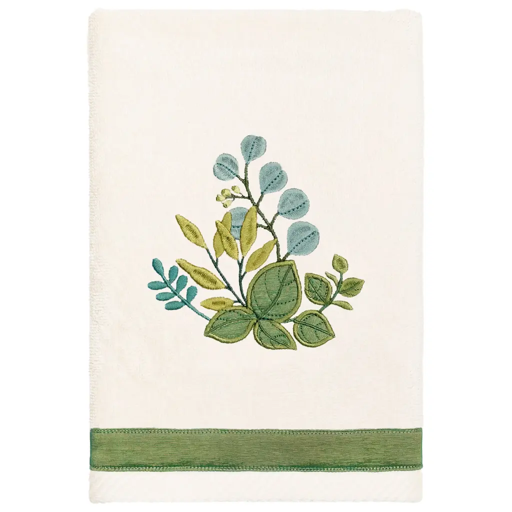 Create a mood of fresh charm in your bath with the Botanica Embellished Towel Collection by Authentic Hotel and Spa. These towels feature an applique embroidered bouquet with branches of lush foliage. Cloud soft and super absorbent, these luxurious, durable towels keep their plush appearance after washing. This collection is available in 8 elegant colors: White, Beige, Blush, Aqua, Silver, Cocoa, Charcoal and Marine. The Botanica Towel Collection brings a vibrant spirit and richness to your bath decor and makes a great gift! Note: Due to variations in computer screen resolutions, slight color differences may exist between images provided and actual product.Embroidered Foliage design100% Premium Turkish CottonSuperbly absorbent and quick dryingAvailable in 8 elegant colorsMachine wash cold, No bleach, line dry or dry cleanSet includes 2 bath towels (27" x 54") / 2 hand towels (16" x 30")Made in TurkeyProudly Embellished in USA
