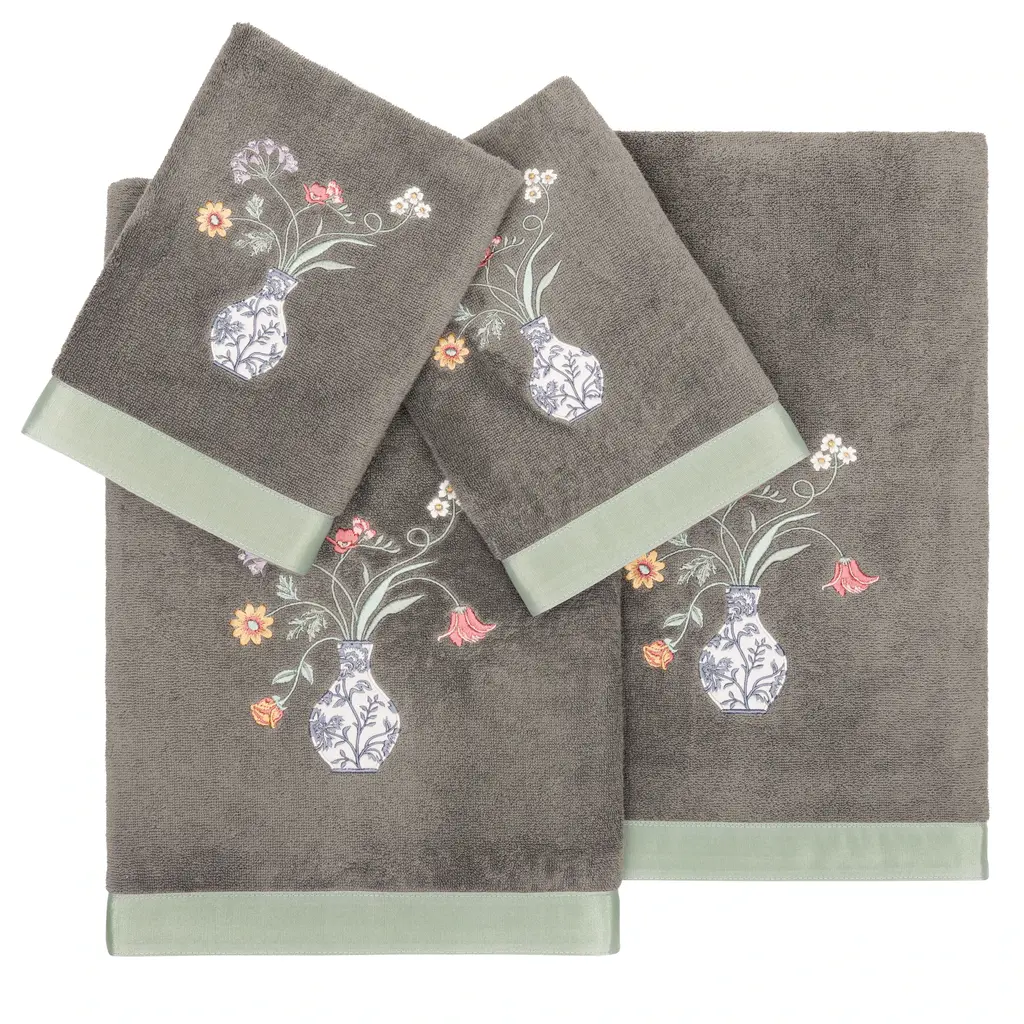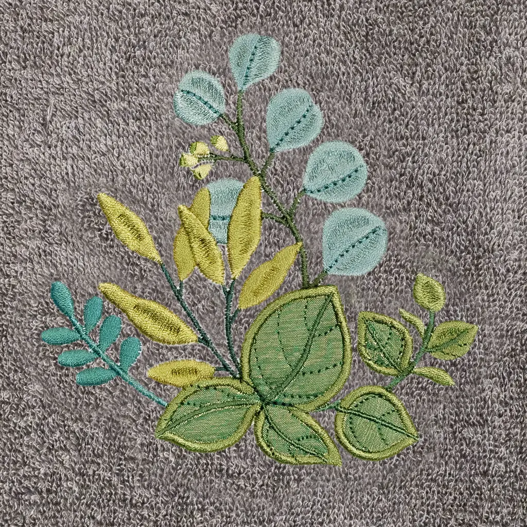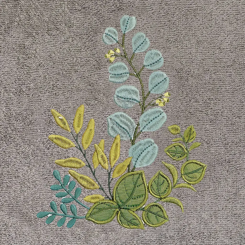 Create a mood of fresh charm in your bath with the Botanica Embellished Towel Collection by Authentic Hotel and Spa. These towels feature an applique embroidered bouquet with branches of lush foliage. Cloud soft and super absorbent, these luxurious, durable towels keep their plush appearance after washing. This collection is available in 8 elegant colors: White, Beige, Blush, Aqua, Silver, Cocoa, Charcoal and Marine. The Botanica Towel Collection brings a vibrant spirit and richness to your bath decor and makes a great gift! Note: Due to variations in computer screen resolutions, slight color differences may exist between images provided and actual product.Embroidered Foliage design100% Premium Turkish CottonSuperbly absorbent and quick dryingAvailable in 8 elegant colorsMachine wash cold, No bleach, line dry or dry cleanSet includes 2 bath towels (27" x 54") / 2 hand towels (16" x 30")Made in TurkeyProudly Embellished in USA