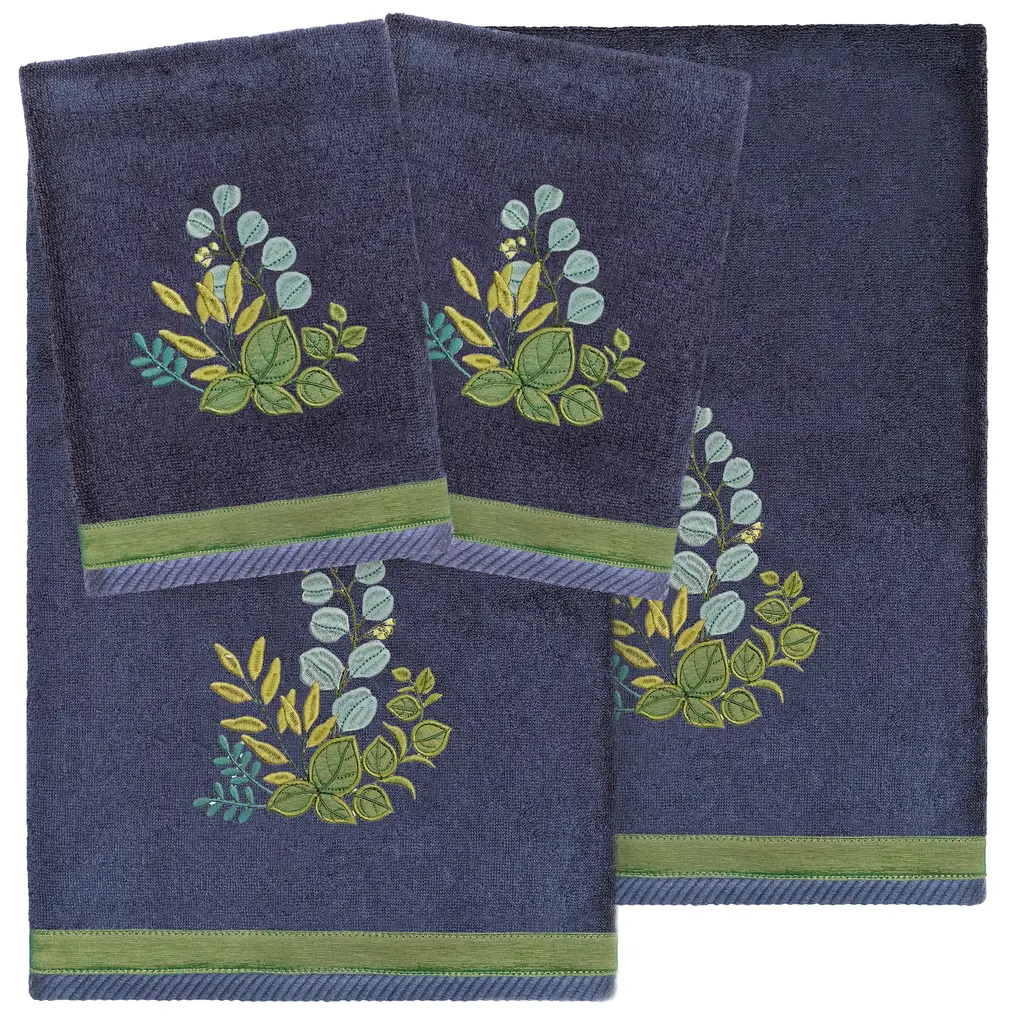 Create a mood of fresh charm in your bath with the Botanica Embellished Towel Collection by Authentic Hotel and Spa. These towels feature an applique embroidered bouquet with branches of lush foliage. Cloud soft and super absorbent, these luxurious, durable towels keep their plush appearance after washing. This collection is available in 8 elegant colors: White, Beige, Blush, Aqua, Silver, Cocoa, Charcoal and Marine. The Botanica Towel Collection brings a vibrant spirit and richness to your bath decor and makes a great gift! Note: Due to variations in computer screen resolutions, slight color differences may exist between images provided and actual product.Embroidered Foliage design100% Premium Turkish CottonSuperbly absorbent and quick dryingAvailable in 8 elegant colorsMachine wash cold, No bleach, line dry or dry cleanSet includes 2 bath towels (27" x 54") / 2 hand towels (16" x 30")Made in TurkeyProudly Embellished in USA