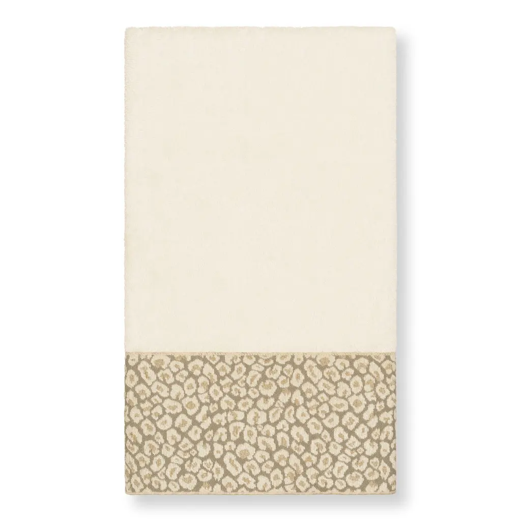 Authentic Hotel And Spa Turkish Cotton Cheetah Jacquard Trim Cream 3-Piece Towel Set - Cream