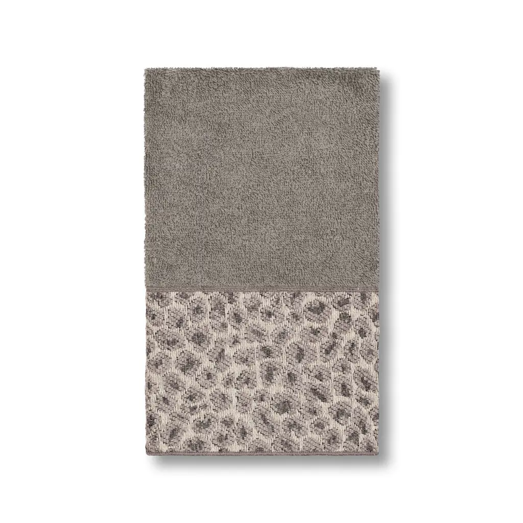 This authentic hotel and spa 3-piece towel set is made from plush, high end Turkish cotton for supreme absorbency and durability. These beautiful dark grey towels are embellished with a global, wild and textural grey jacquard woven cheetah-like patterned border to add that special touch to your bathroom.Set includes: one (1) bath towel, one (1) hand towel and one (1) washcloth100-percent soft and absorbent Turkish cottonEmbellished with a woven jacquard cloth borderThese luxurious towels are produced in a state of the art green factory in Turkey which runs on 100-percent solar energyCare instructions: Machine wash and dryMade in TurkeyDimensions: Bath towel - 27 inches wide x 54 inches long, Hand towel - 16 inches wide x 30 inches long, Washcloth -13 inches wide x 13 inches long