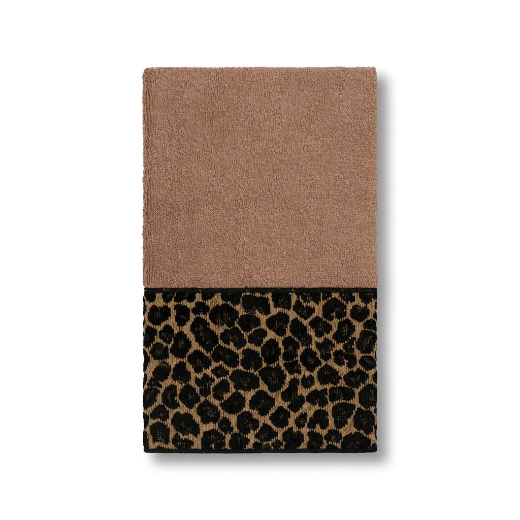 Authentic Hotel And Spa Turkish Cotton Cheetah Jacquard Trim Latte Brown 4-Piece Towel Set - Latte