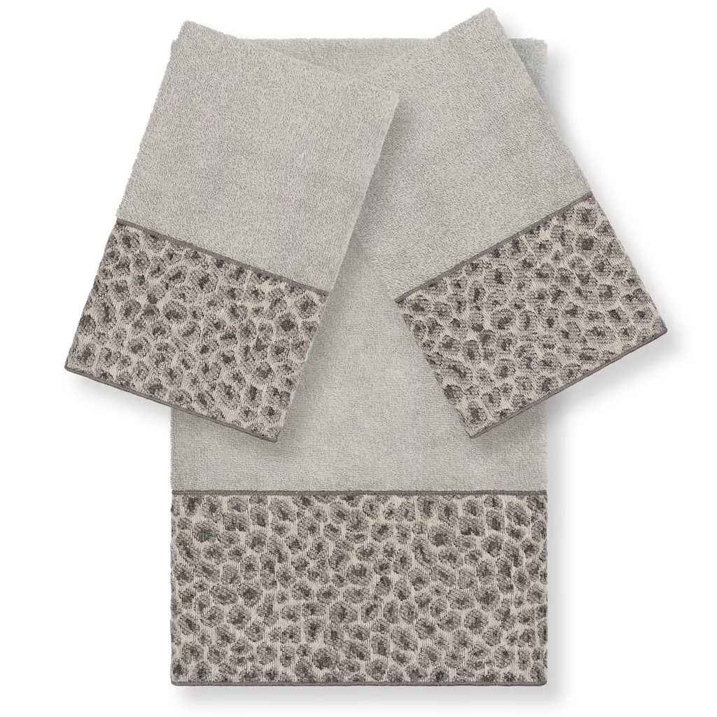 Authentic Hotel And Spa Turkish Cotton Cheetah Jacquard Trim Light Grey 3-Piece Towel Set - N/a