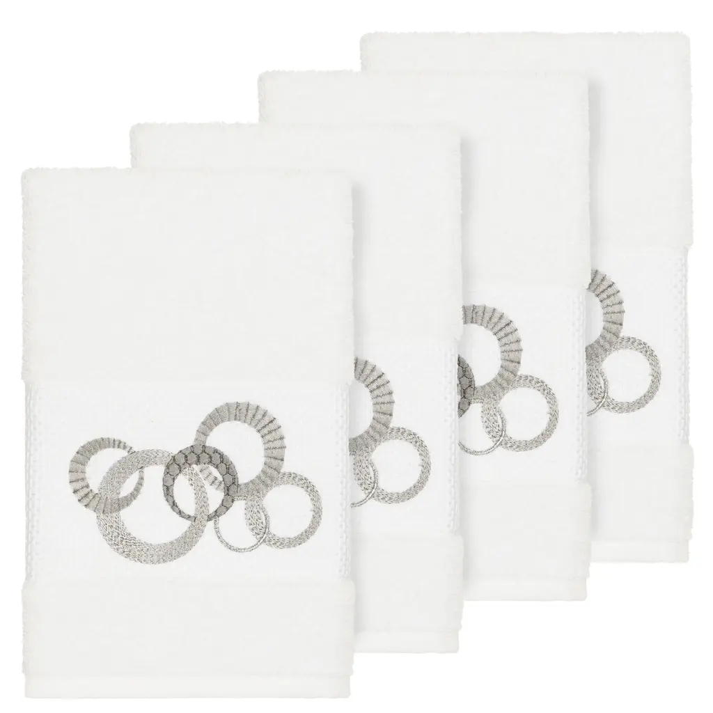 Authentic Hotel And Spa Turkish Cotton Circles Embroidered White 4-Piece Hand Towel Set - N/a