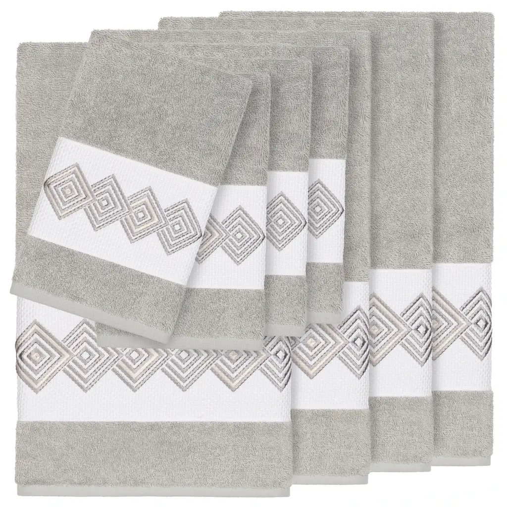 Authentic Hotel And Spa Turkish Cotton Diamonds Embroidered Light Grey 8-Piece Towel Set - N/a