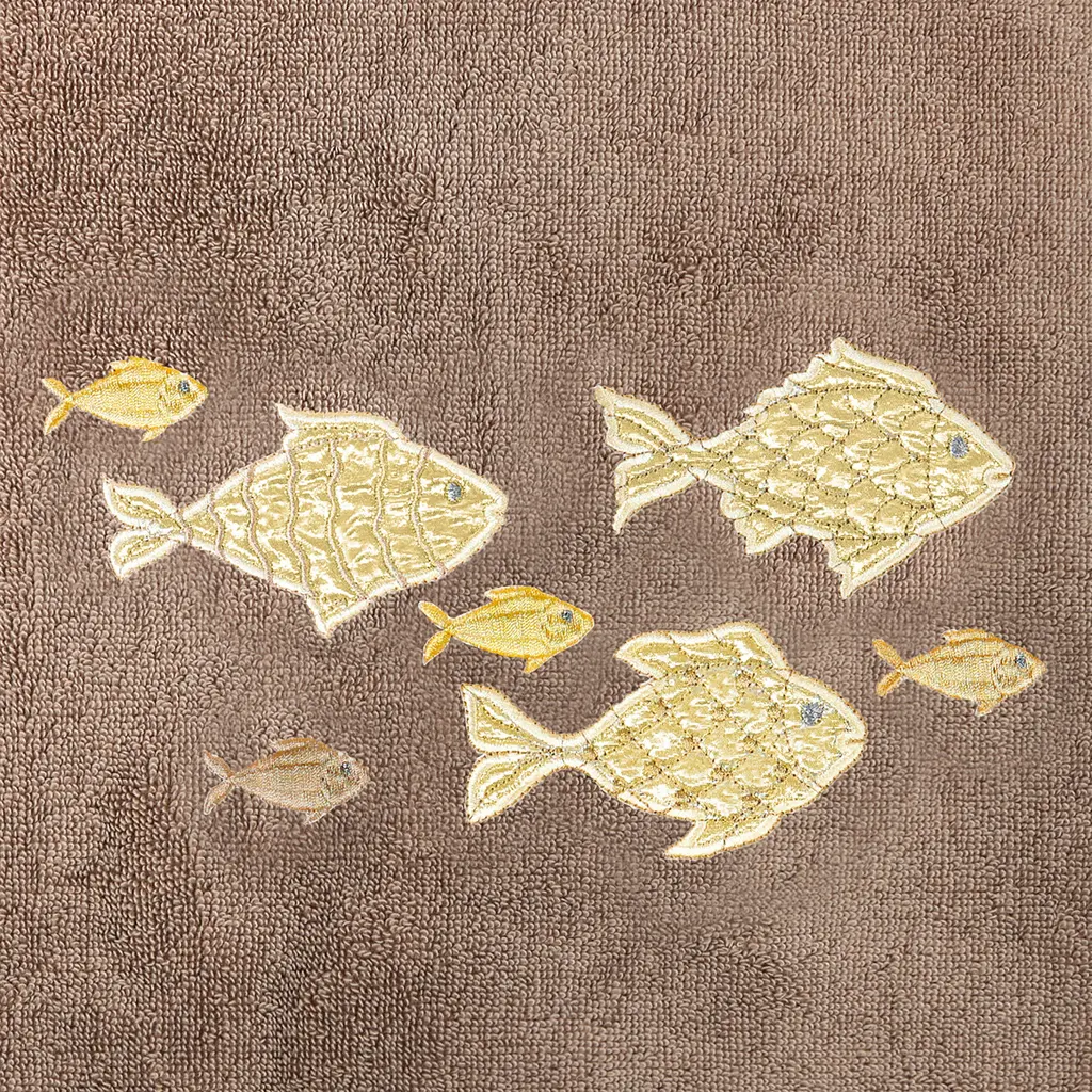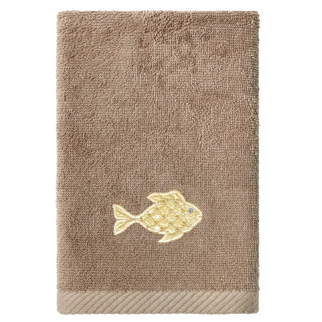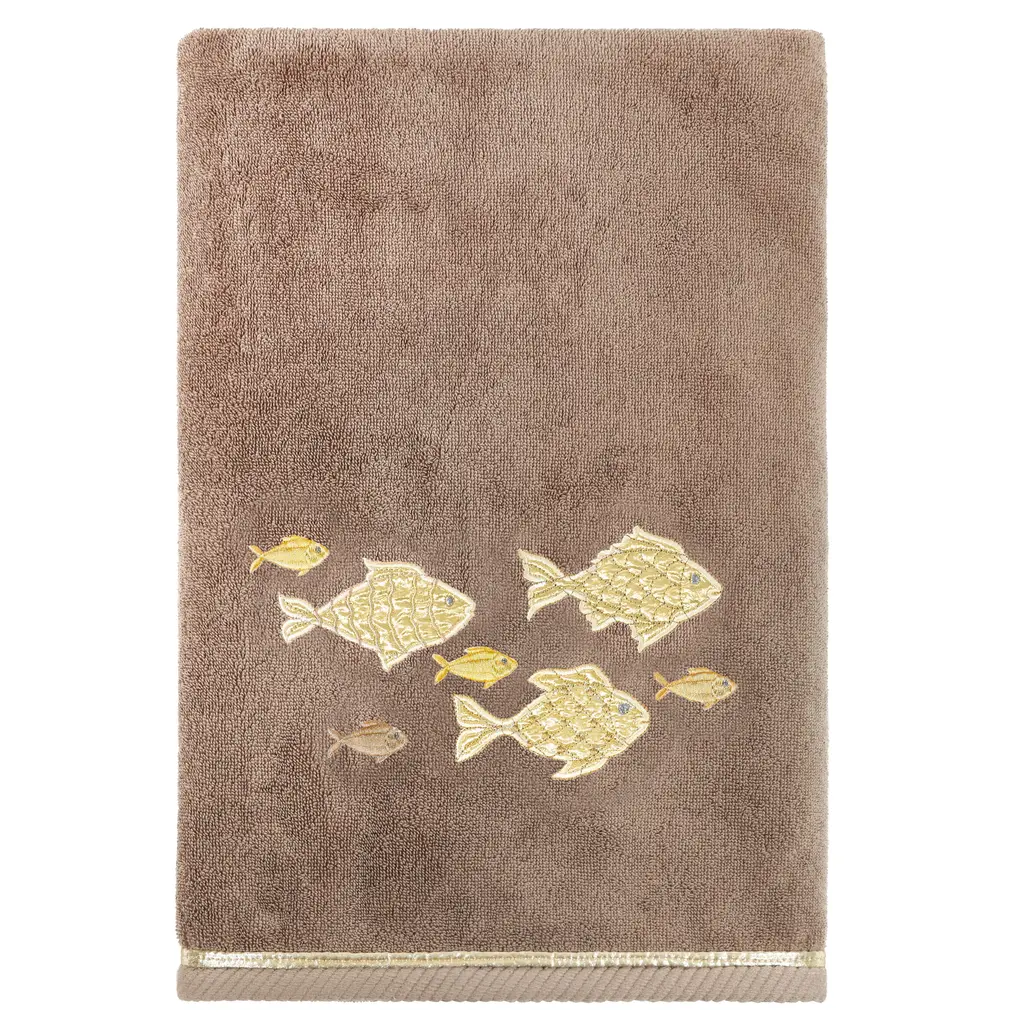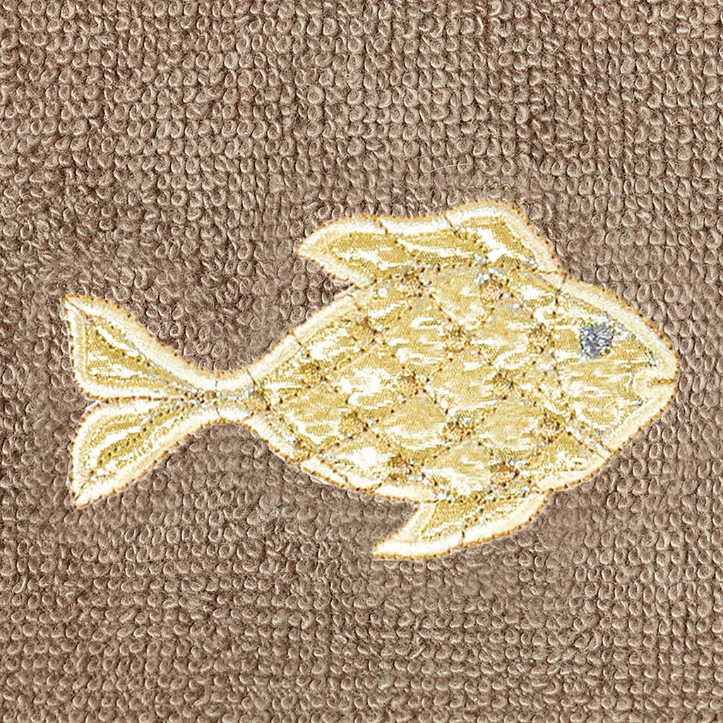 Your decorations are not complete without graceful embroidered towels for the comfort of your family and guests. The Figi towels by Authentic Hotel and Spa feature sparkling applique fish and are trimmed with a matching cord. Cloud soft and super absorbent, these luxurious, durable towels keep their plush appearance after washing. This collection is available in 8 elegant colors: White, Beige, Blush, Aqua, Silver, Cocoa, Charcoal and Marine. The Figi Towel Collection brings a coastal spirit and richness to your home decor and makes a great gift! Note: Due to variations in computer screen resolutions, slight color differences may exist between images provided and actual product.Embroidered Fish design100% Premium Turkish CottonSuperbly absorbent and quick dryingAvailable in 8 elegant colorsMachine wash cold, No bleach, line dry or dry cleanSet includes 1 bath towel (27" x 54") / 1 hand towel (16" x 30") / 1 fingertip towel (11" x 18")Made in TurkeyProudly Embellished in USA