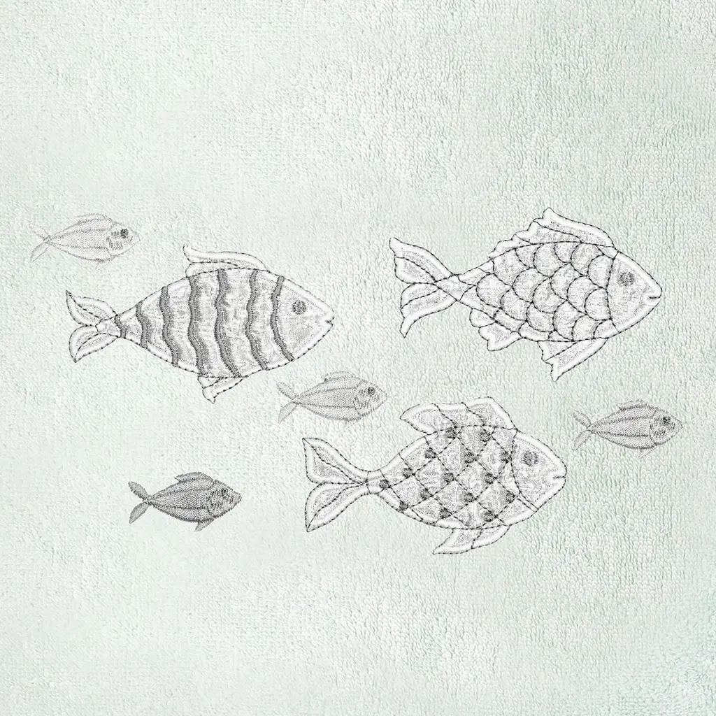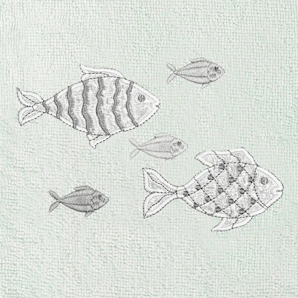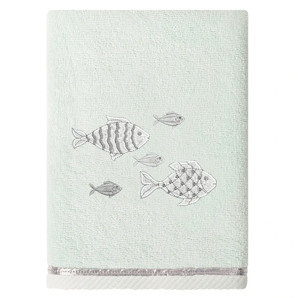 Your decorations are not complete without graceful embroidered towels for the comfort of your family and guests. The Figi towels by Authentic Hotel and Spa feature sparkling applique fish and are trimmed with a matching cord. Cloud soft and super absorbent, these luxurious, durable towels keep their plush appearance after washing. This collection is available in 8 elegant colors: White, Beige, Blush, Aqua, Silver, Cocoa, Charcoal and Marine. The Figi Towel Collection brings a coastal spirit and richness to your home decor and makes a great gift! Note: Due to variations in computer screen resolutions, slight color differences may exist between images provided and actual product.Embroidered Fish design100% Premium Turkish CottonSuperbly absorbent and quick dryingAvailable in 8 elegant colorsMachine wash cold, No bleach, line dry or dry cleanSet includes 2 bath towels (27" x 54") / 2 hand towels (16" x 30")Made in TurkeyProudly Embellished in USA