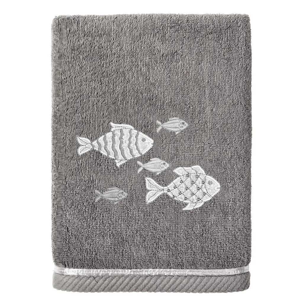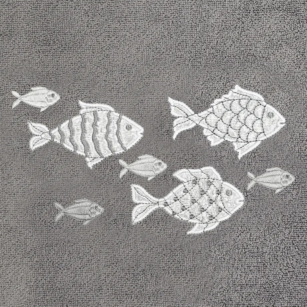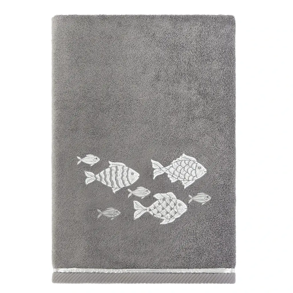 Your decorations are not complete without graceful embroidered towels for the comfort of your family and guests. The Figi towels by Authentic Hotel and Spa feature sparkling applique fish and are trimmed with a matching cord. Cloud soft and super absorbent, these luxurious, durable towels keep their plush appearance after washing. This collection is available in 8 elegant colors: White, Beige, Blush, Aqua, Silver, Cocoa, Charcoal and Marine. The Figi Towel Collection brings a coastal spirit and richness to your home decor and makes a great gift! Note: Due to variations in computer screen resolutions, slight color differences may exist between images provided and actual product.Embroidered Fish design100% Premium Turkish CottonSuperbly absorbent and quick dryingAvailable in 8 elegant colorsMachine wash cold, No bleach, line dry or dry cleanSet includes 2 bath towels (27" x 54") / 2 hand towels (16" x 30")Made in TurkeyProudly Embellished in USA