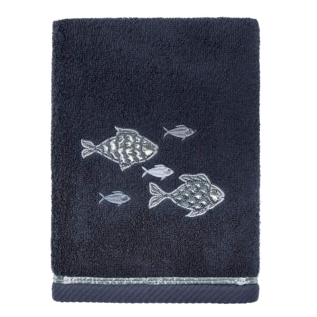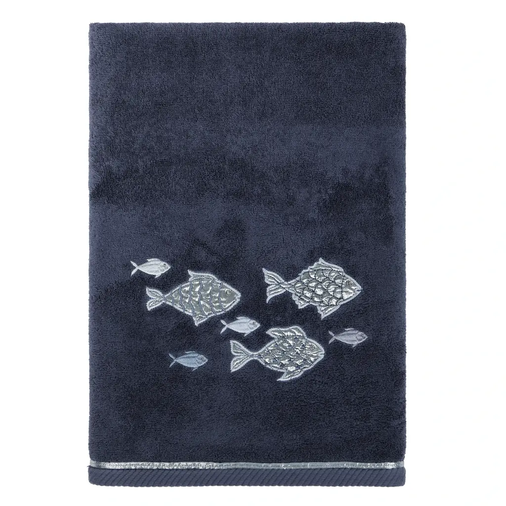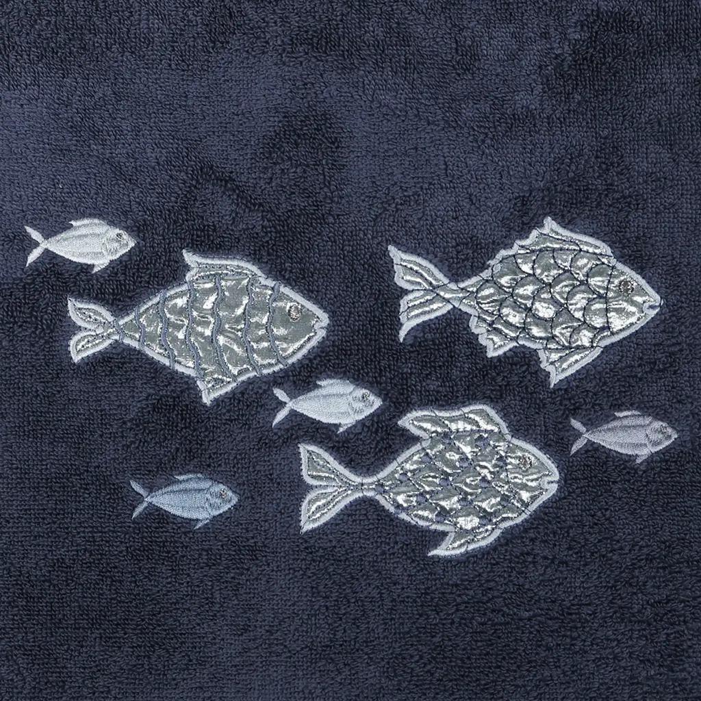 Your decorations are not complete without graceful embroidered towels for the comfort of your family and guests. The Figi towels by Authentic Hotel and Spa feature sparkling applique fish and are trimmed with a matching cord. Cloud soft and super absorbent, these luxurious, durable towels keep their plush appearance after washing. This collection is available in 8 elegant colors: White, Beige, Blush, Aqua, Silver, Cocoa, Charcoal and Marine. The Figi Towel Collection brings a coastal spirit and richness to your home decor and makes a great gift! Note: Due to variations in computer screen resolutions, slight color differences may exist between images provided and actual product.Embroidered Fish design100% Premium Turkish CottonSuperbly absorbent and quick dryingAvailable in 8 elegant colorsMachine wash cold, No bleach, line dry or dry cleanSet includes 2 bath towels (27" x 54") / 2 hand towels (16" x 30")Made in TurkeyProudly Embellished in USA