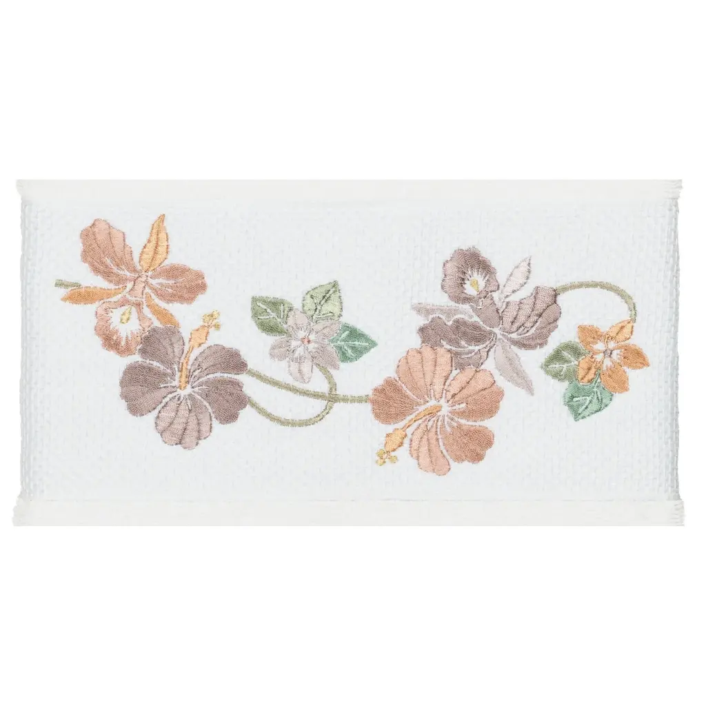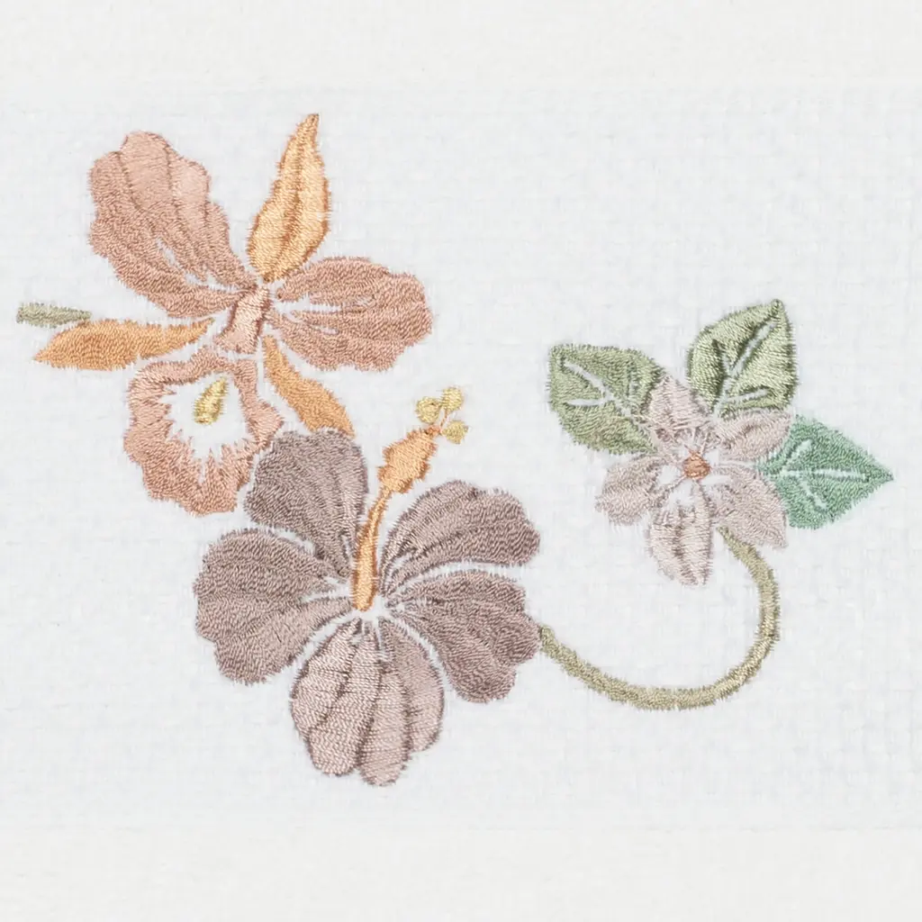 This authentic hotel and spa 3-piece towel set is made from plush, high end Turkish cotton for supreme absorbency and durability. These beautiful white towels are embellished with a floral and vine embroidery design with a textured woven border to add that special touch to your bathroom. Set includes: one (1) bath towel, one (1) hand towel and one (1) washcloth100-percent soft and absorbent Turkish cottonEmbellished with an embroidered designThese luxurious towels are produced in a state of the art green factory in Turkey which runs on 100-percent solar energyCare instructions: Machine wash and dryMade in TurkeyDimensions: Bath towel - 27 inches wide x 54 inches long, Hand towel - 16 inches wide x 30 inches long, Washcloth -13 inches wide x 13 inches long