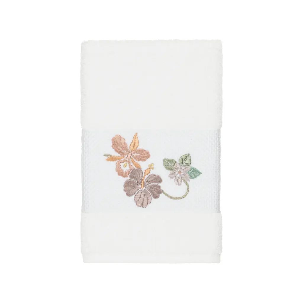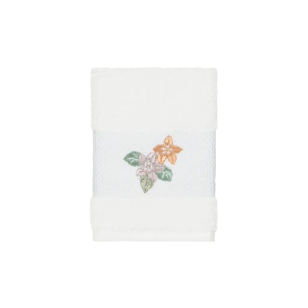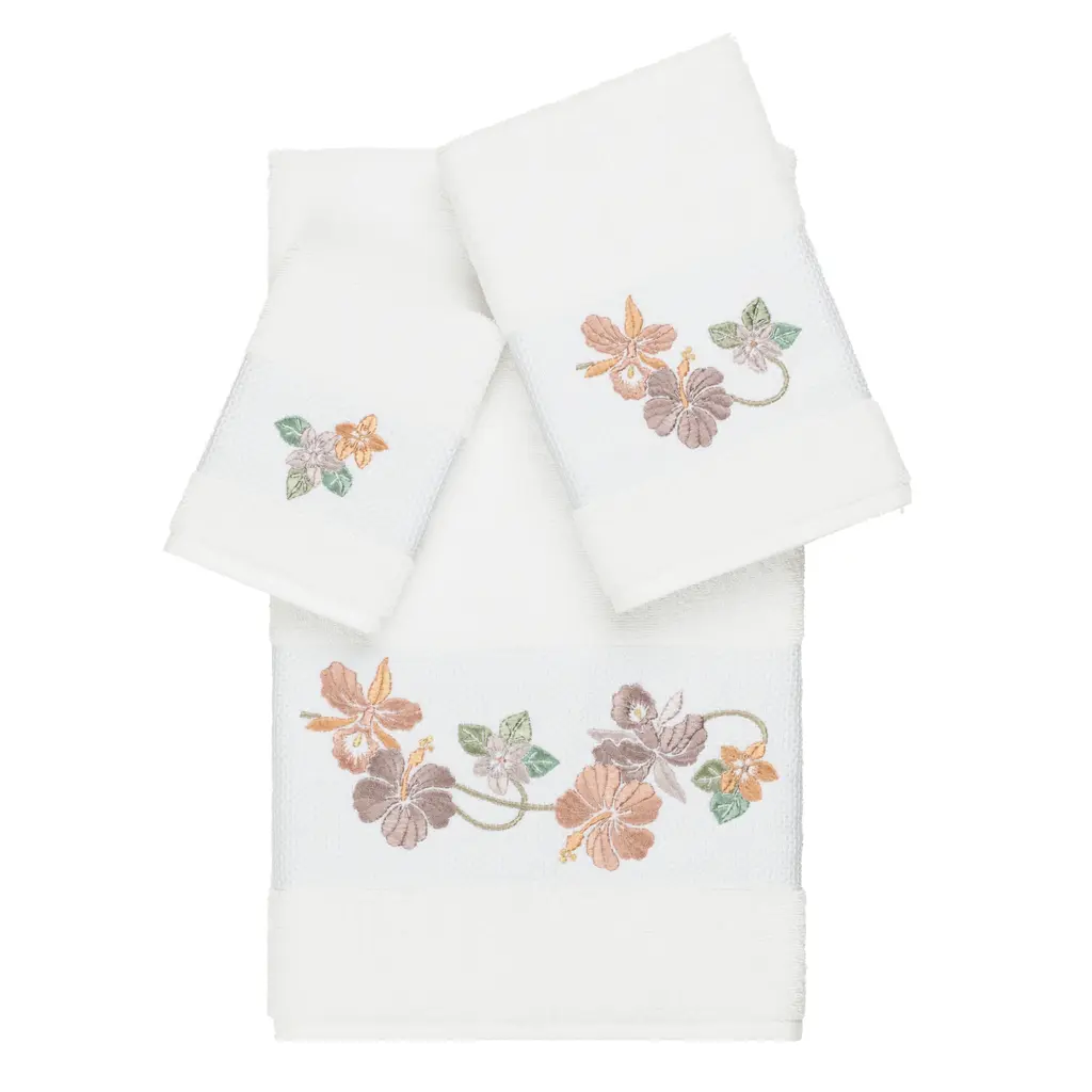 Authentic Hotel And Spa Turkish Cotton Floral Vine Embroidered White 3-Piece Towel Set - White