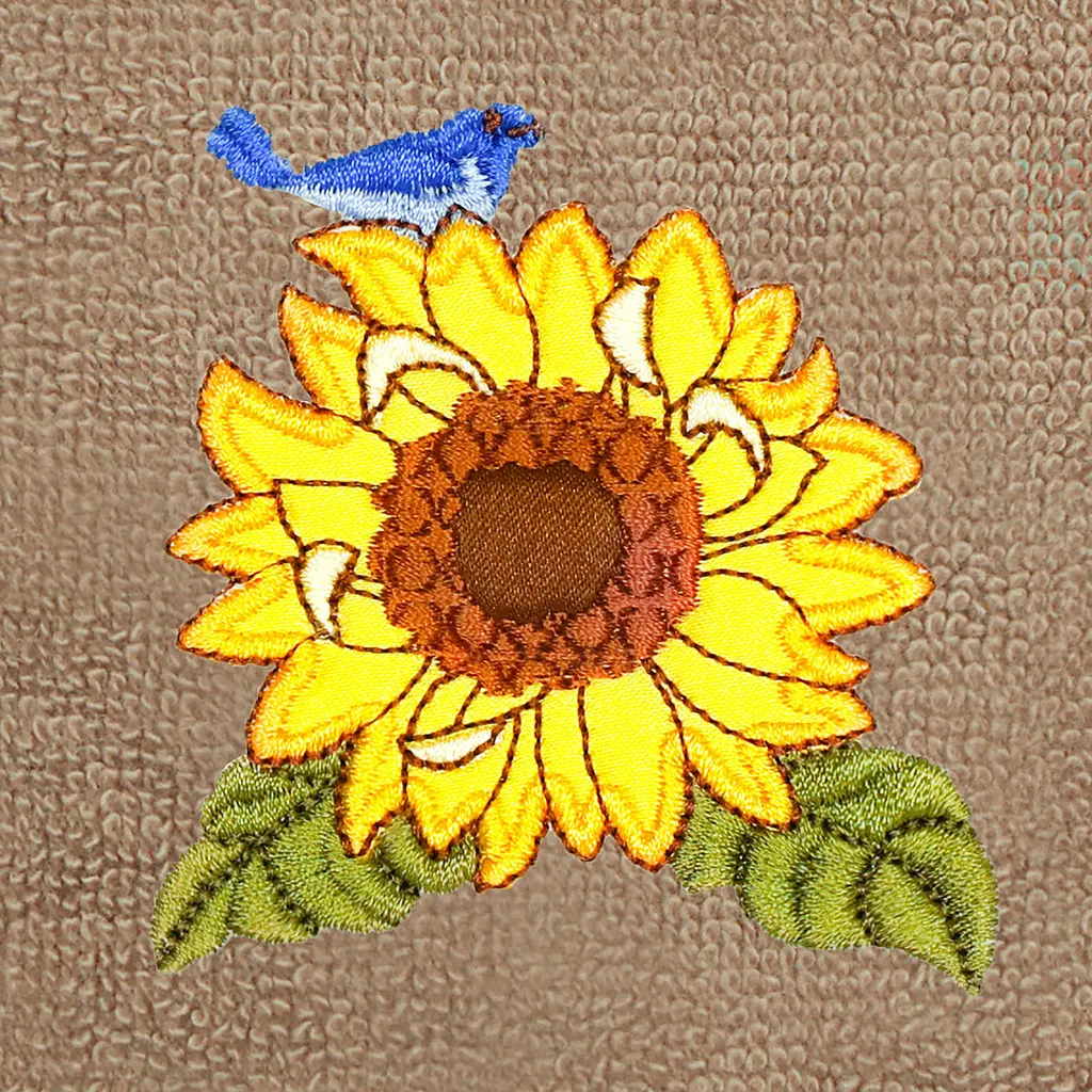 Create a mood of country charm in your bath with the Girasol Embellished Towel Collection by Authentic Hotel and Spa. These towels feature an applique embroidered bouquet of vibrant sunflowers and lavender, highlighted by a bright bird perched on top. Cloud soft and super absorbent, these luxurious, durable towels keep their plush appearance after washing. This collection is available in 8 elegant colors: White, Beige, Blush, Aqua, Silver, Cocoa, Charcoal and Marine. The Girasol Towel Collection brings a natural spirit and richness to your home decor and makes a great gift!Embroidered Bouquet design 100% Premium Turkish Cotton Superbly absorbent and quick drying Available in 8 elegant colors Machine wash cold, No bleach, line dry or dry clean Set includes 1 bath towel (27" x 54") / 1 hand towel (16" x 30") / 1 fingertip towel (11" x 18") Made in Turkey Proudly Embellished in USA