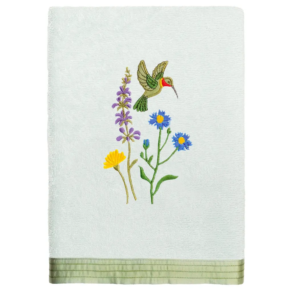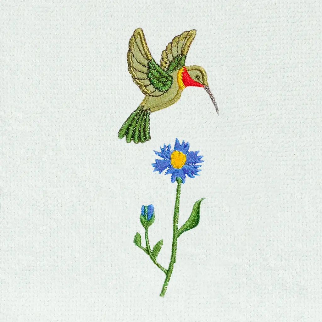 Your bath decor is not complete without a set of luxurius embroidered towels by Authentic Hotel and Spa for the comfort of your family and guests. The Hada towels feature applique hummingbirds, dancing among wild flowers and are trimmed with a lustrous taffeta border. Cloud soft and super absorbent, these luxurious, durable towels keep their plush appearance after washing. This collection is available in 8 elegant colors: White, Beige, Blush, Aqua, Silver, Cocoa, Charcoal and Marine. The Hada Towel Collection brings cheerful spirit and richness to your home decor and makes a great gift. Note: Due to variations in computer screen resolutions, slight color differences may exist between images provided and actual product.Embroidered Hummingbird and Flower design100% Premium Turkish CottonSuperbly absorbent and quick dryingAvailable in 8 elegant colorsMachine wash cold, No bleach, line dry or dry cleanSet includes 1 bath towel (27" x 54") / 1 hand towel (16" x 30") / 1 fingertip towel (11" x 18")Made in TurkeyProudly Embellished in USA