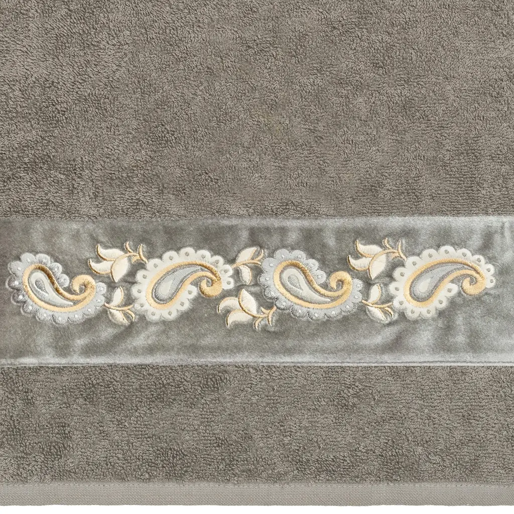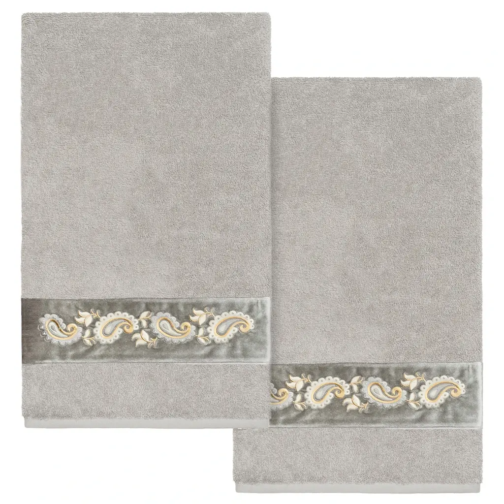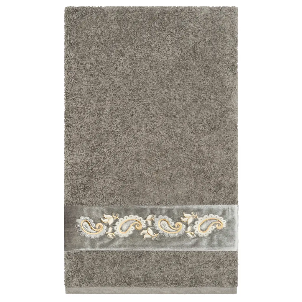 Your decorations are not complete without elegant embroidered towels by Authentic Hotel and Spa for the comfort of your family and guests. The Mackenzie towels feature intricate paisley embroidery on a soft velvet border. Cloud soft and super absorbent, these luxurious, durable towels keep their plush appearance after washing. This collection is available in 8 elegant colors: White, Cream, Latte, Tea Rose, Teal, Navy, Light Gray and Dark Gray. The Mackenzie Towel Collection brings a romantic spirit and richness to your home decor and makes a great gift. Note: Due to variations in computer screen resolutions, slight color differences may exist between images provided and actual product.Embroidered Paisley design100% Premium Turkish CottonSuperbly absorbent and quick dryingAvailable in 8 elegant colorsMachine wash cold, No bleach, line dry or dry cleanSet includes 2 bath towels (27" x 54")Made in TurkeyProudly Embellished in USA