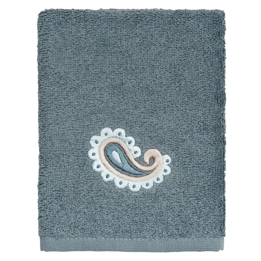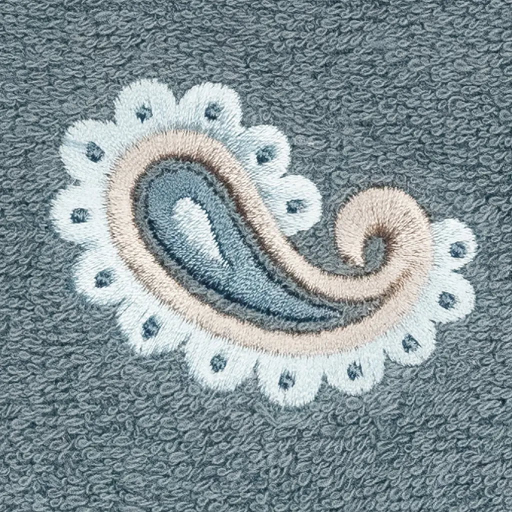 Your decorations are not complete without elegant embroidered towels by Authentic Hotel and Spa for the comfort of your family and guests. The Mackenzie towels feature intricate paisley embroidery on a soft velvet border. Cloud soft and super absorbent, these luxurious, durable towels keep their plush appearance after washing. This collection is available in 8 elegant colors: White, Cream, Latte, Tea Rose, Teal, Navy, Light Gray and Dark Gray. The Mackenzie Towel Collection brings a romantic spirit and richness to your home decor and makes a great gift. Note: Due to variations in computer screen resolutions, slight color differences may exist between images provided and actual product.Embroidered Paisley design100% Premium Turkish CottonSuperbly absorbent and quick dryingAvailable in 8 elegant colorsMachine wash cold, No bleach, line dry or dry cleanSet includes 1 bath towel (27" x 54") / 1 hand towel (16" x 30") / 1 washcloth (13" x 13")Made in TurkeyProudly Embellished in USA
