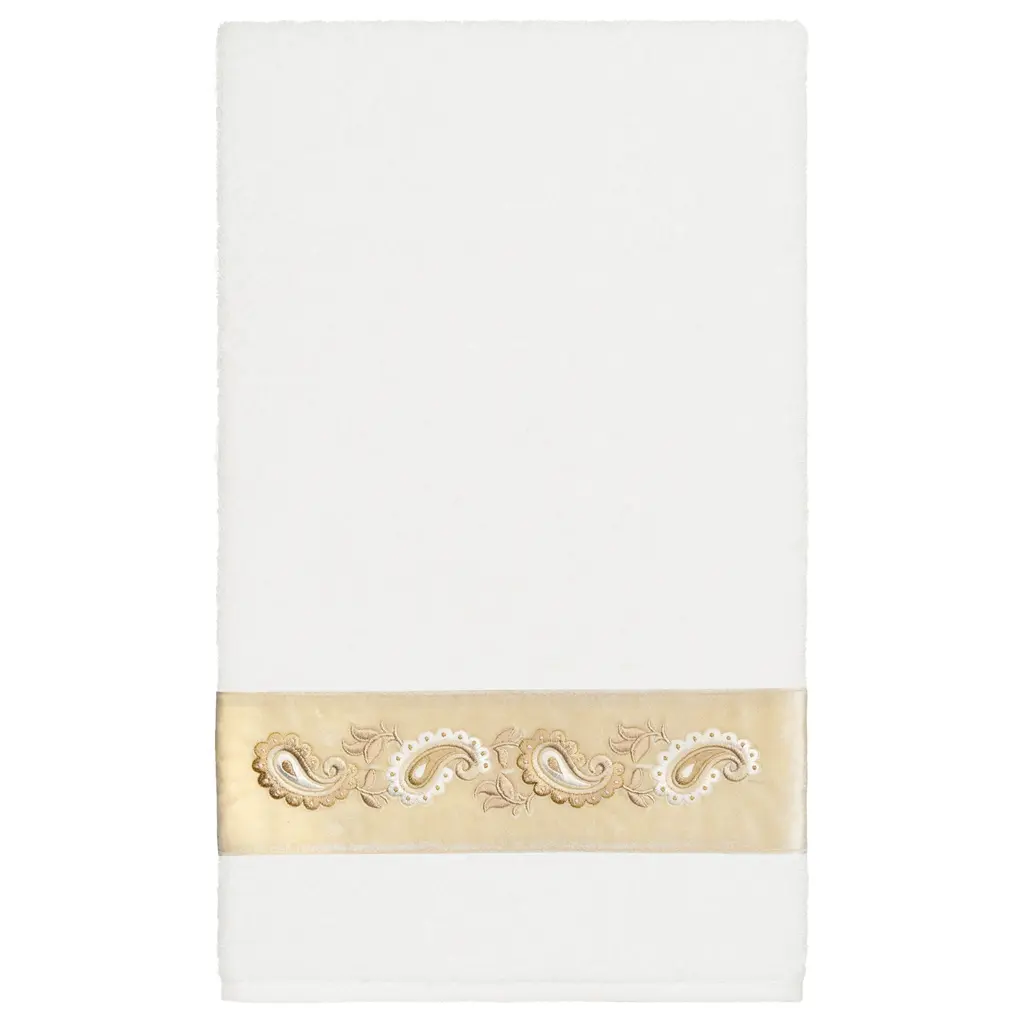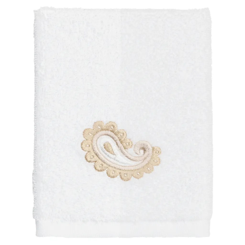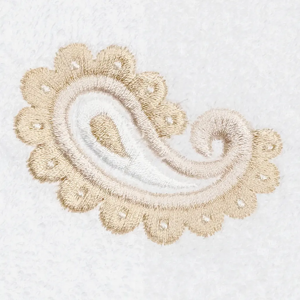 Your decorations are not complete without elegant embroidered towels by Authentic Hotel and Spa for the comfort of your family and guests. The Mackenzie towels feature intricate paisley embroidery on a soft velvet border. Cloud soft and super absorbent, these luxurious, durable towels keep their plush appearance after washing. This collection is available in 8 elegant colors: White, Cream, Latte, Tea Rose, Teal, Navy, Light Gray and Dark Gray. The Mackenzie Towel Collection brings a romantic spirit and richness to your home decor and makes a great gift. Note: Due to variations in computer screen resolutions, slight color differences may exist between images provided and actual product.Embroidered Paisley design100% Premium Turkish CottonSuperbly absorbent and quick dryingAvailable in 8 elegant colorsMachine wash cold, No bleach, line dry or dry cleanSet includes 1 bath towel (27" x 54") / 1 hand towel (16" x 30") / 1 washcloth (13" x 13")Made in TurkeyProudly Embellished in USA