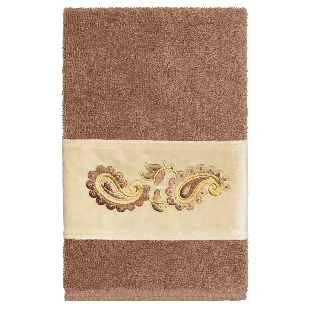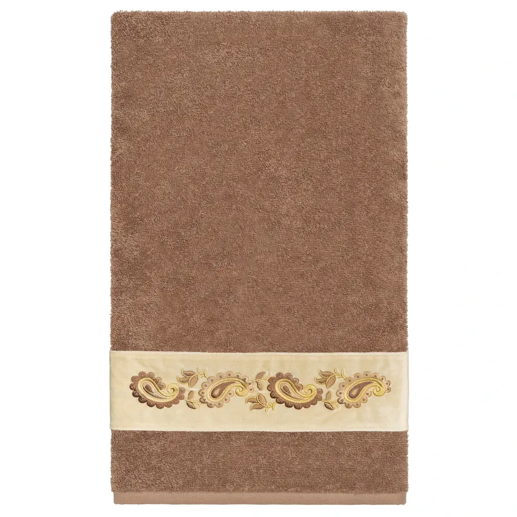 Your decorations are not complete without elegant embroidered towels by Authentic Hotel and Spa for the comfort of your family and guests. The Mackenzie towels feature intricate paisley embroidery on a soft velvet border. Cloud soft and super absorbent, these luxurious, durable towels keep their plush appearance after washing. This collection is available in 8 elegant colors: White, Cream, Latte, Tea Rose, Teal, Navy, Light Gray and Dark Gray. The Mackenzie Towel Collection brings a romantic spirit and richness to your home decor and makes a great gift. Note: Due to variations in computer screen resolutions, slight color differences may exist between images provided and actual product.Embroidered Paisley design100% Premium Turkish CottonSuperbly absorbent and quick dryingAvailable in 8 elegant colorsMachine wash cold, No bleach, line dry or dry cleanSet includes 2 bath towels (27" x 54") / 2 hand towels (16" x 30")Made in TurkeyProudly Embellished in USA