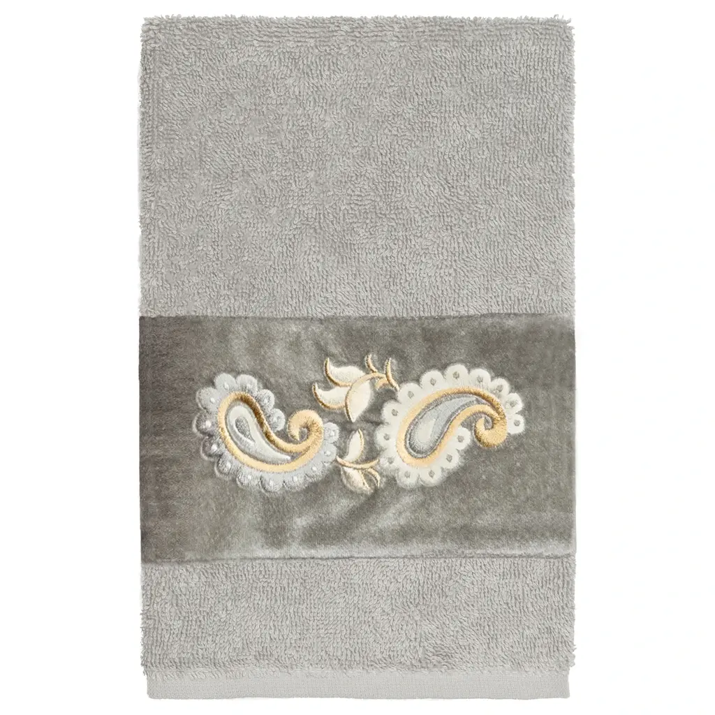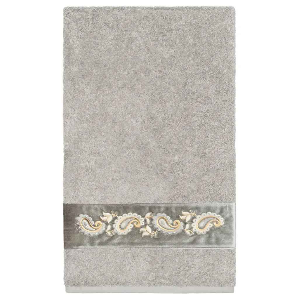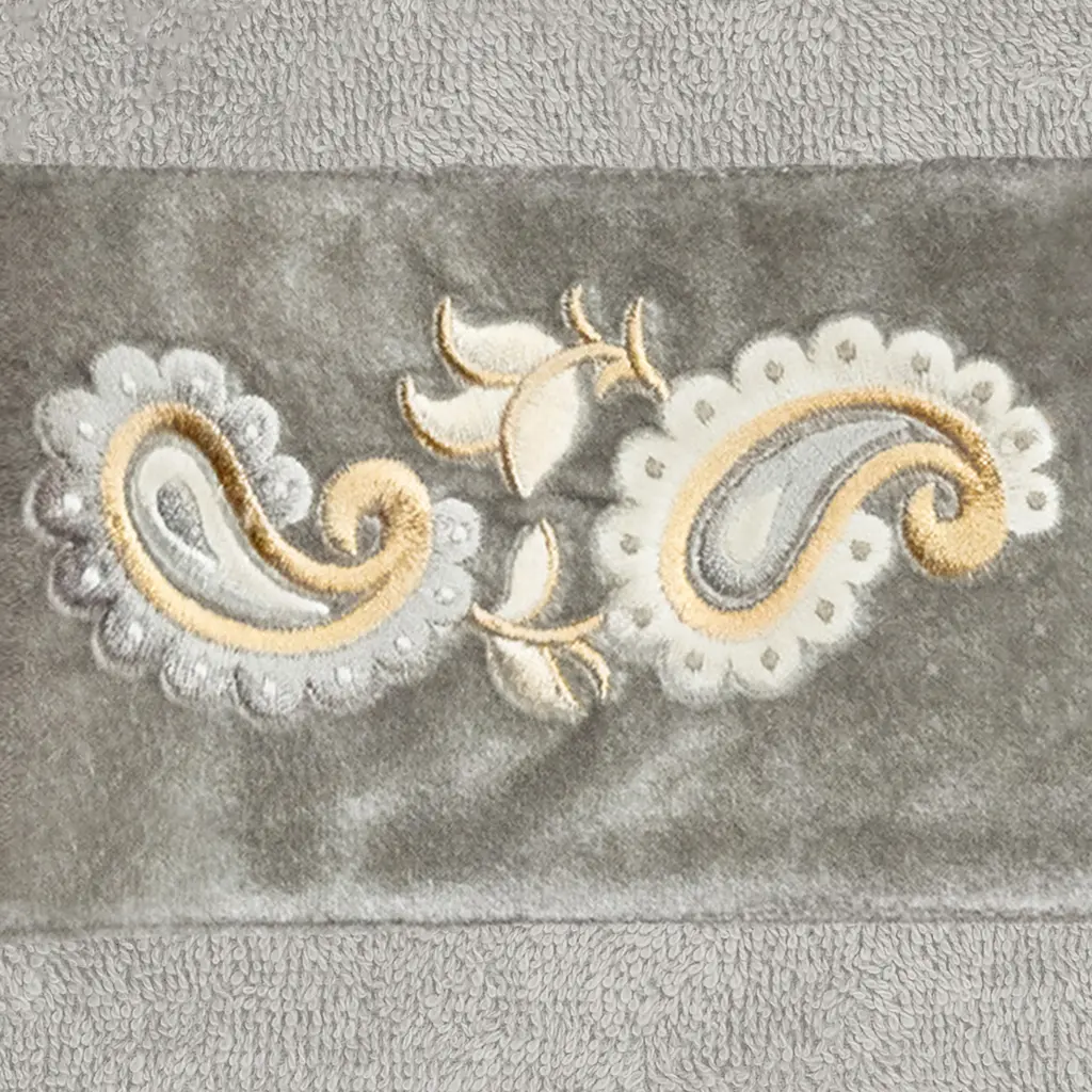 Your decorations are not complete without elegant embroidered towels by Authentic Hotel and Spa for the comfort of your family and guests. The Mackenzie towels feature intricate paisley embroidery on a soft velvet border. Cloud soft and super absorbent, these luxurious, durable towels keep their plush appearance after washing. This collection is available in 8 elegant colors: White, Cream, Latte, Tea Rose, Teal, Navy, Light Gray and Dark Gray. The Mackenzie Towel Collection brings a romantic spirit and richness to your home decor and makes a great gift. Note: Due to variations in computer screen resolutions, slight color differences may exist between images provided and actual product.Embroidered Paisley design100% Premium Turkish CottonSuperbly absorbent and quick dryingAvailable in 8 elegant colorsMachine wash cold, No bleach, line dry or dry cleanSet includes 2 bath towels (27" x 54") / 2 hand towels (16" x 30")Made in TurkeyProudly Embellished in USA