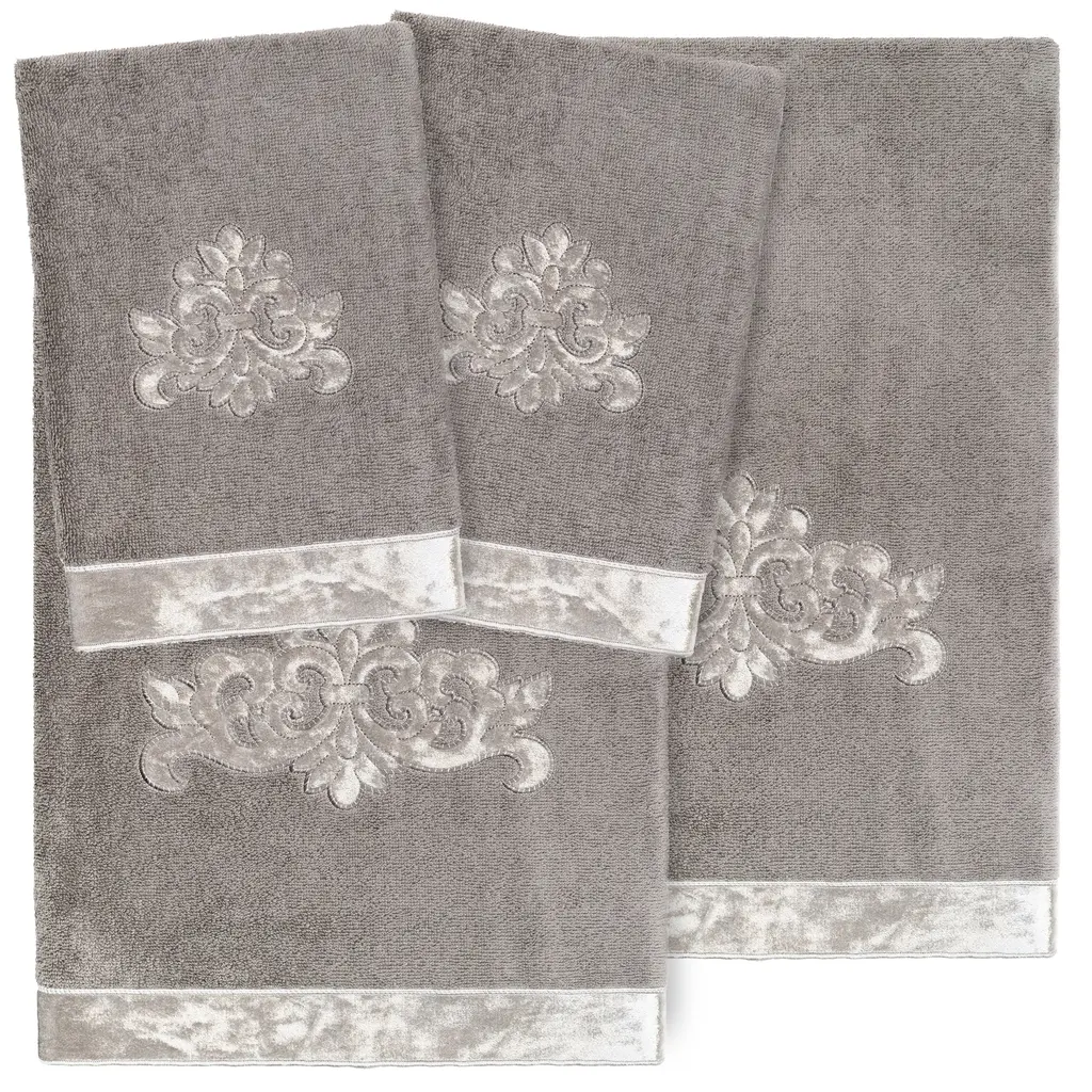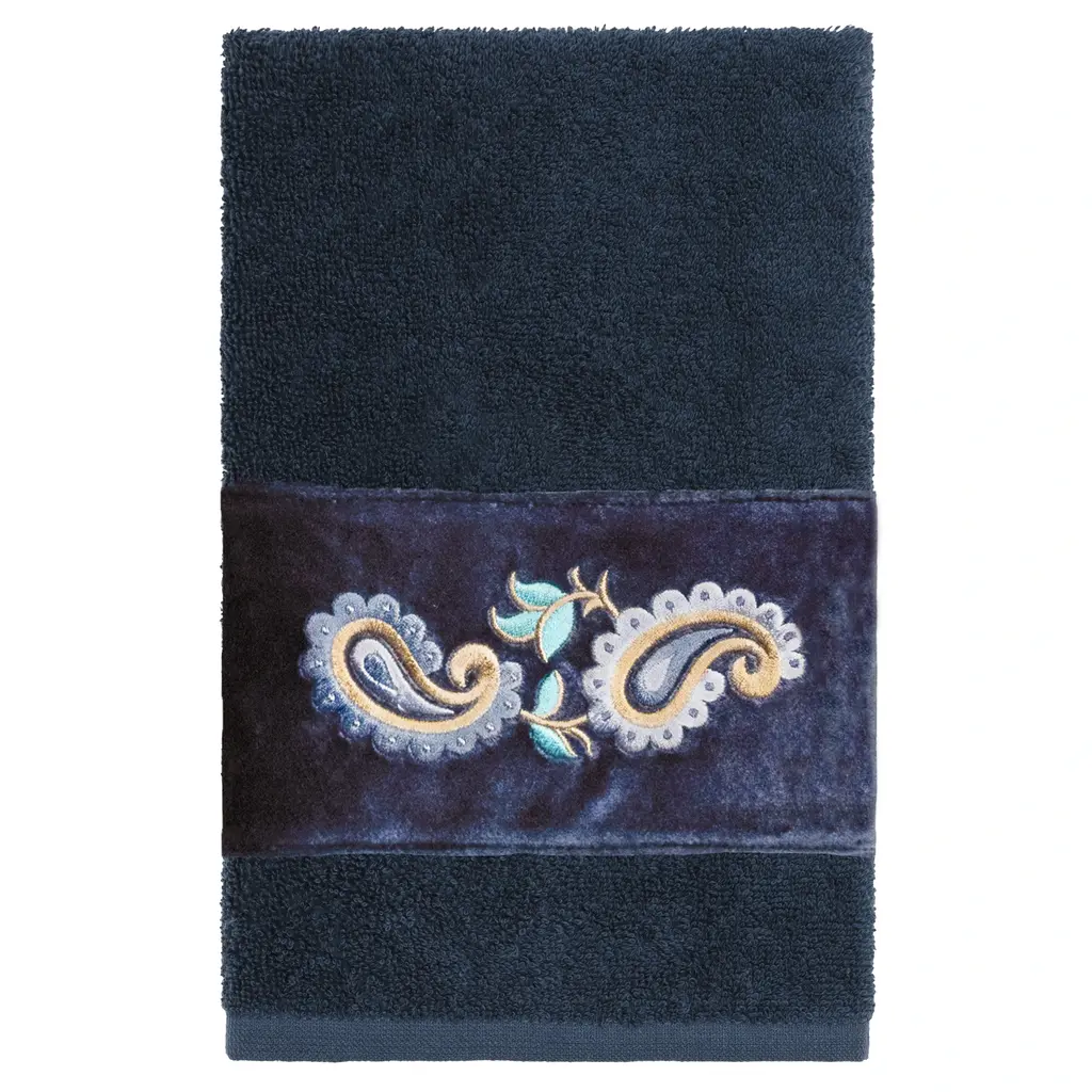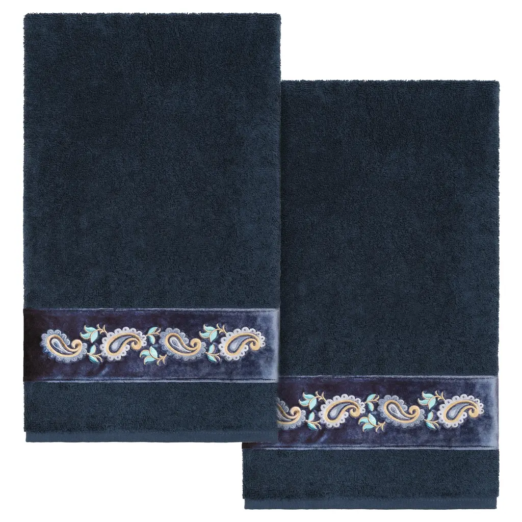 Your decorations are not complete without elegant embroidered towels by Authentic Hotel and Spa for the comfort of your family and guests. The Mackenzie towels feature intricate paisley embroidery on a soft velvet border. Cloud soft and super absorbent, these luxurious, durable towels keep their plush appearance after washing. This collection is available in 8 elegant colors: White, Cream, Latte, Tea Rose, Teal, Navy, Light Gray and Dark Gray. The Mackenzie Towel Collection brings a romantic spirit and richness to your home decor and makes a great gift. Note: Due to variations in computer screen resolutions, slight color differences may exist between images provided and actual product.Embroidered Paisley design100% Premium Turkish CottonSuperbly absorbent and quick dryingAvailable in 8 elegant colorsMachine wash cold, No bleach, line dry or dry cleanSet includes 2 bath towels (27" x 54") / 2 hand towels (16" x 30")Made in TurkeyProudly Embellished in USA