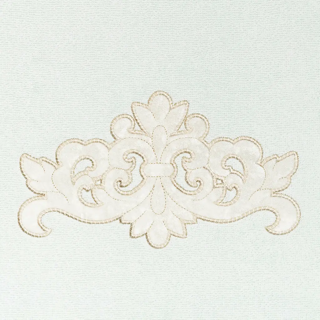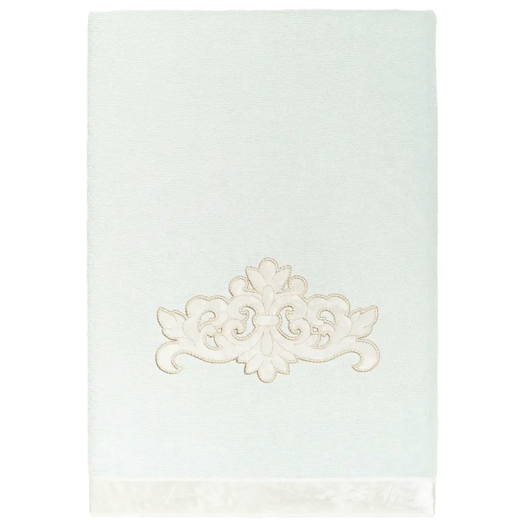 Your decorations are not complete without elegant embroidered towels by Authentic Hotel and Spa for the comfort of your family and guests. The May towels feature a classic velvet crest applique and are trimmed with the same lustrous velvet border. Cloud soft and super absorbent, these luxurious, durable towels keep their plush appearance after washing. This collection is available in 8 elegant colors: White, Beige, Blush, Aqua, Silver, Cocoa, Charcoal and Marine. The May Towel Collection brings a refined spirit and richness to your home decor and makes a great gift. Note: Due to variations in computer screen resolutions, slight color differences may exist between images provided and actual product.Embroidered Velvet Crest design100% Premium Turkish CottonSuperbly absorbent and quick dryingAvailable in 8 elegant colorsMachine wash cold, No bleach, line dry or dry cleanSet includes 2 bath towels (27" x 54")Made in TurkeyProudly Embellished in USA