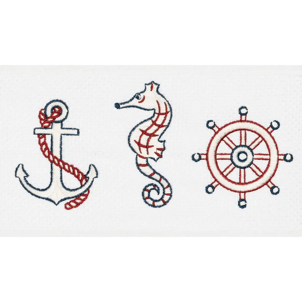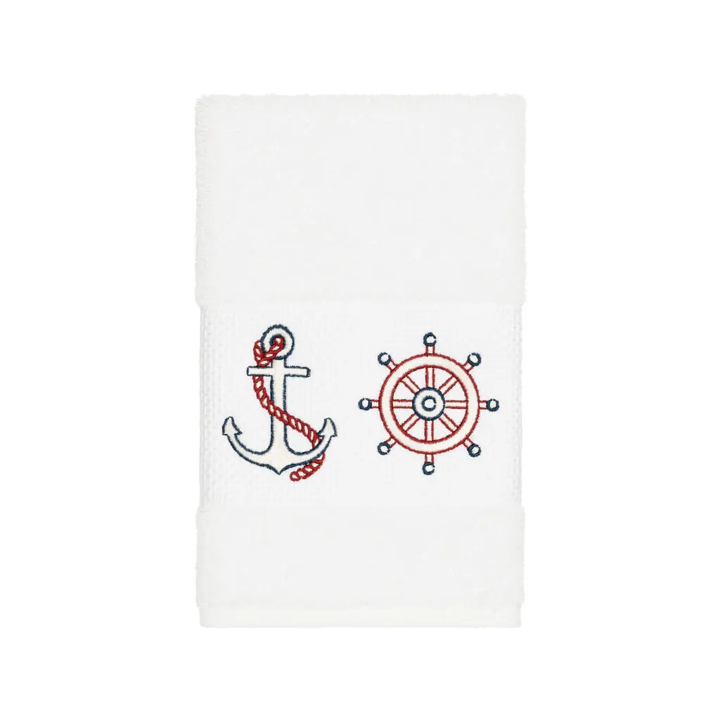 This authentic hotel and spa 3-piece towel set is made from plush, high end Turkish cotton for supreme absorbency and durability. The beautiful white towels are embellished with a nautical embroidery design to add that special touch to your bathroom.Includes: One (1) bath towel and two (2) hand towels100-percent soft and absorbent Turkish cottonEmbellished with an embroidered designThese luxurious towel are produced in a state of the art green factory in Turkey which runs on 100-percent solar energyCare instructions: Machine wash and dryMade in TurkeyDimensions: Bath towel - 27 inches wide x 54 inches long; Hand towel - 16 inches wide x 30 inches long