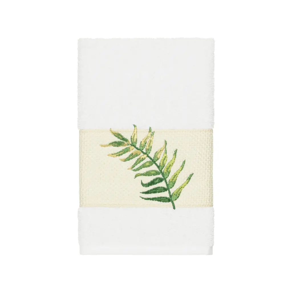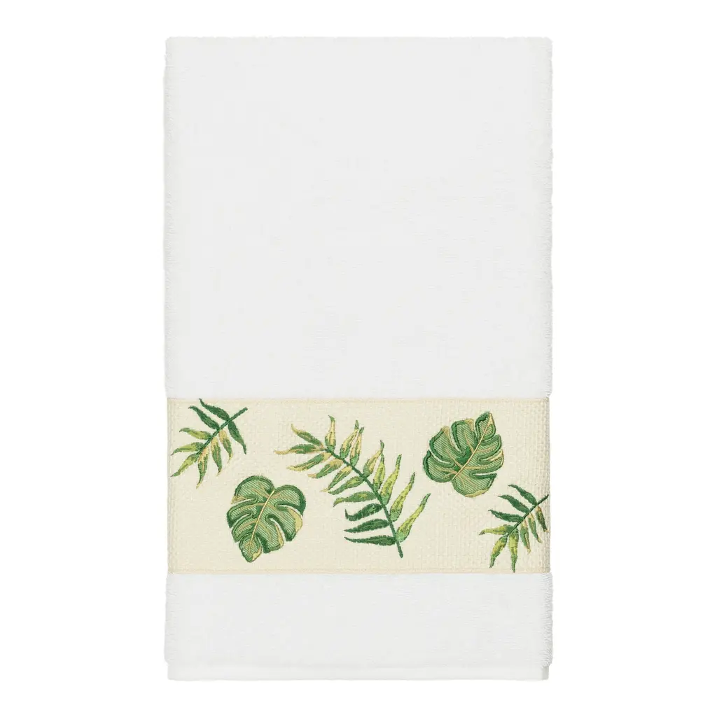 Authentic Hotel And Spa Turkish Cotton Palm Fronds Embroidered White 4-Piece Towel Set - White