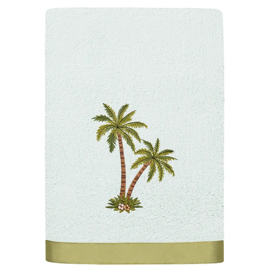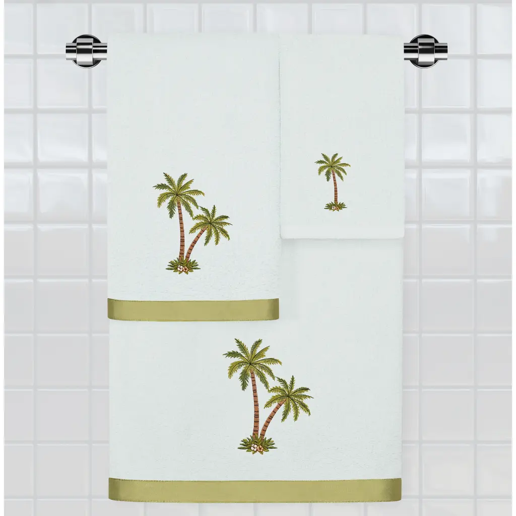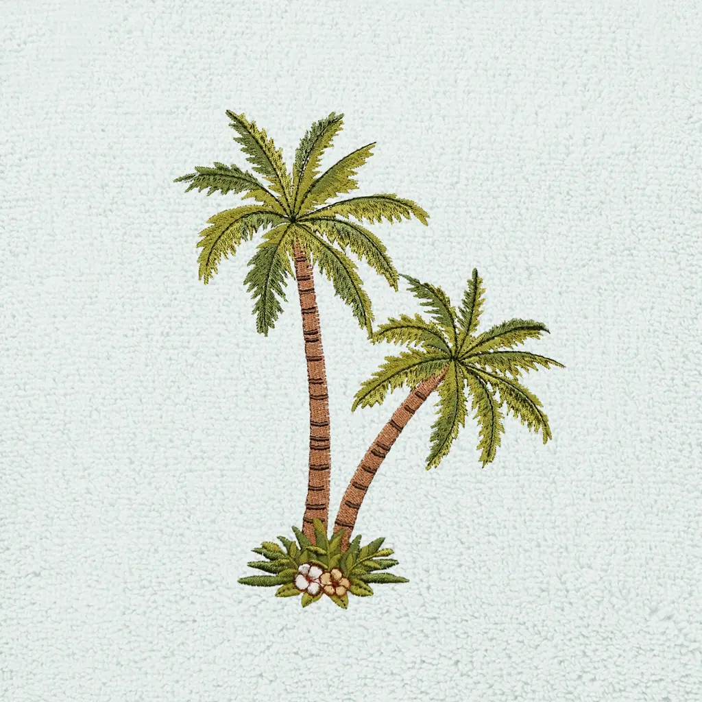 Your decorations are not complete without island style embroidered towels for the comfort of your family and guests. The PALMERA Towels feature swaying palm trees and are trimmed with a matching lustrous border. Cloud soft and super absorbent, these luxurious, durable towels keep their plush appearance after washing. This collection is available in 8 elegant colors: White, Beige, Blush, Aqua, Silver, Cocoa, Charcoal and Marine. The PALMERA Towel Collection brings a tropical spirit and richness to your home decor and makes a great gift!