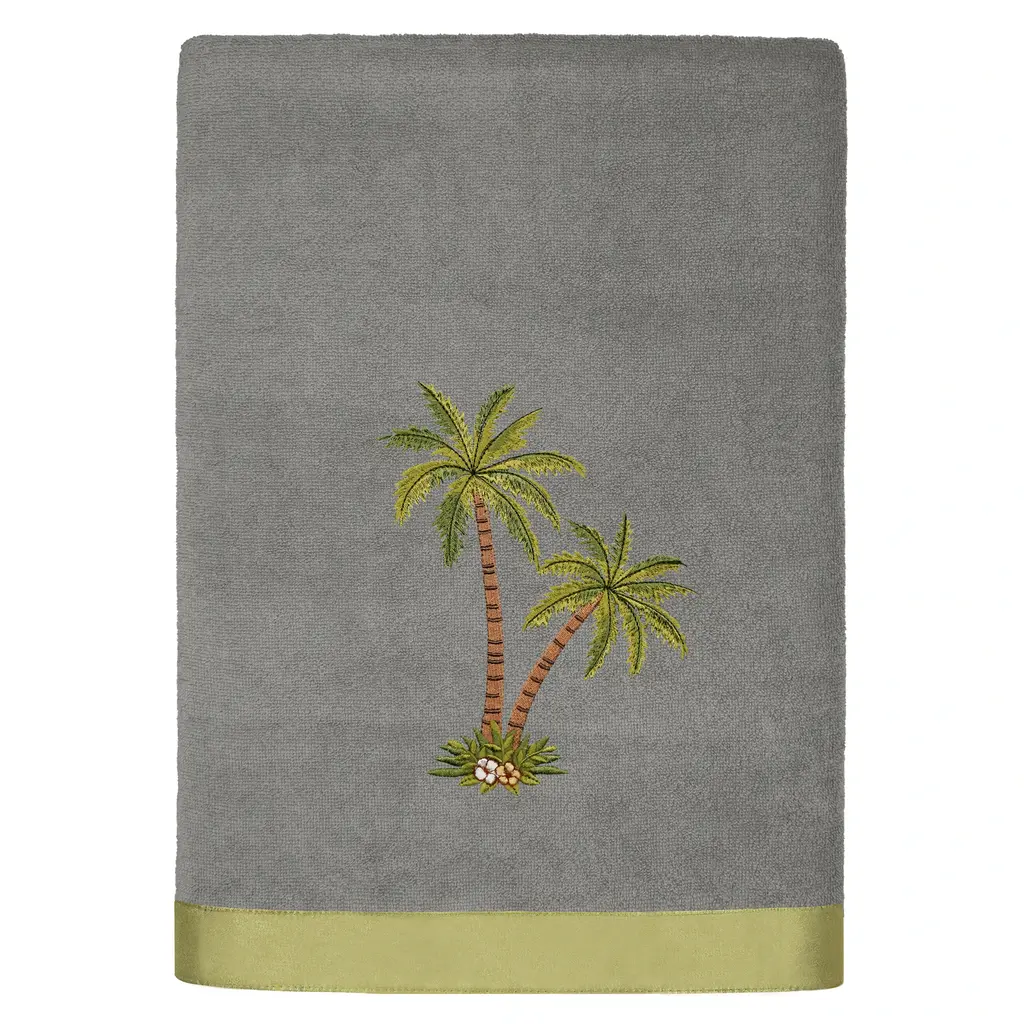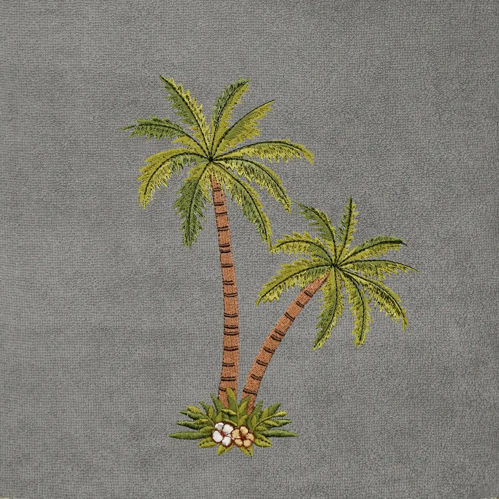 Your decorations are not complete without island style embroidered towels for the comfort of your family and guests. The PALMERA Towels feature swaying palm trees and are trimmed with a matching lustrous border. Cloud soft and super absorbent, these luxurious, durable towels keep their plush appearance after washing. This collection is available in 8 elegant colors: White, Beige, Blush, Aqua, Silver, Cocoa, Charcoal and Marine. The PALMERA Towel Collection brings a tropical spirit and richness to your home decor and makes a great gift!