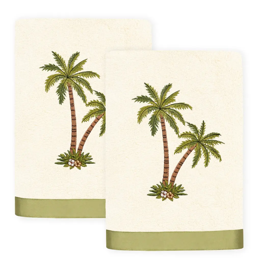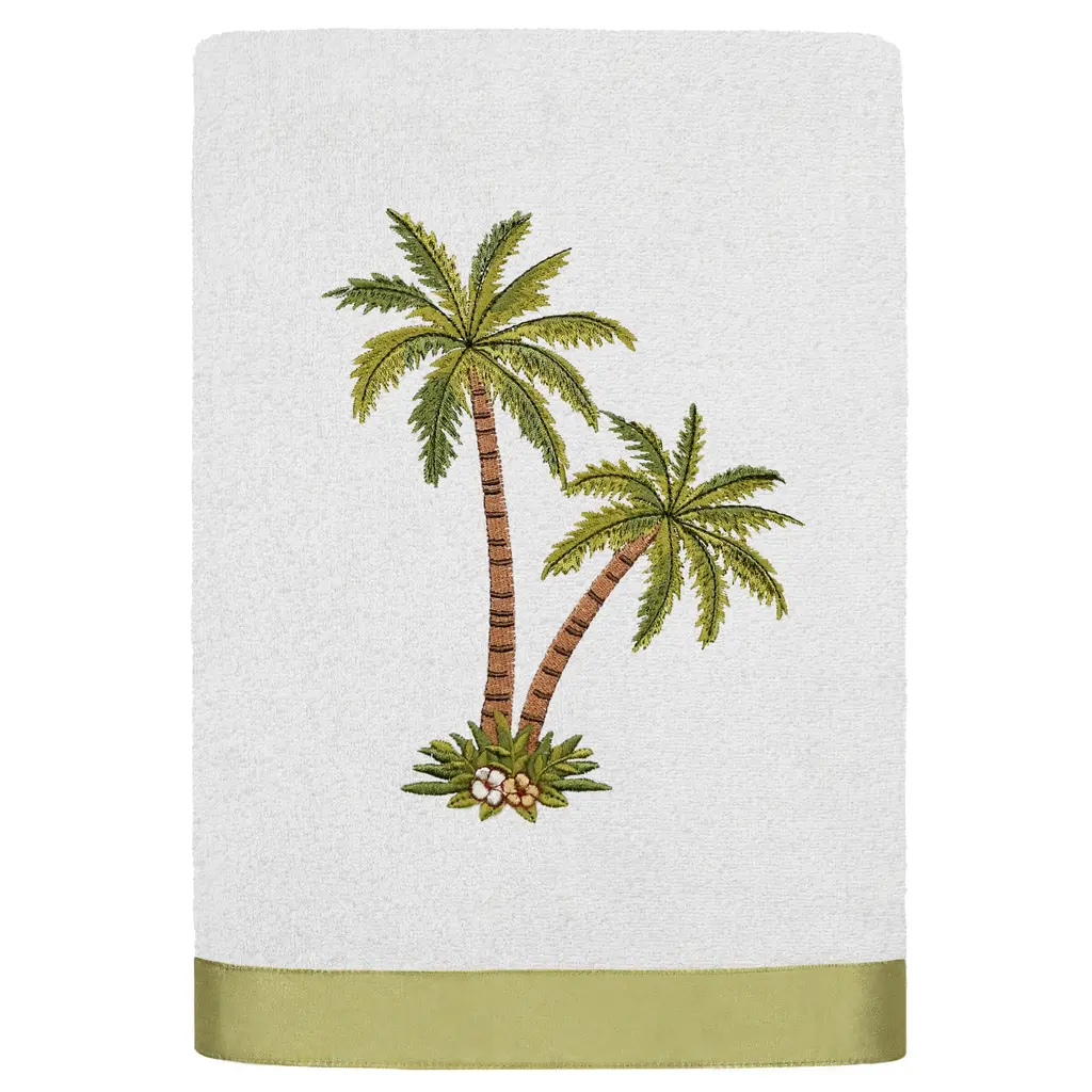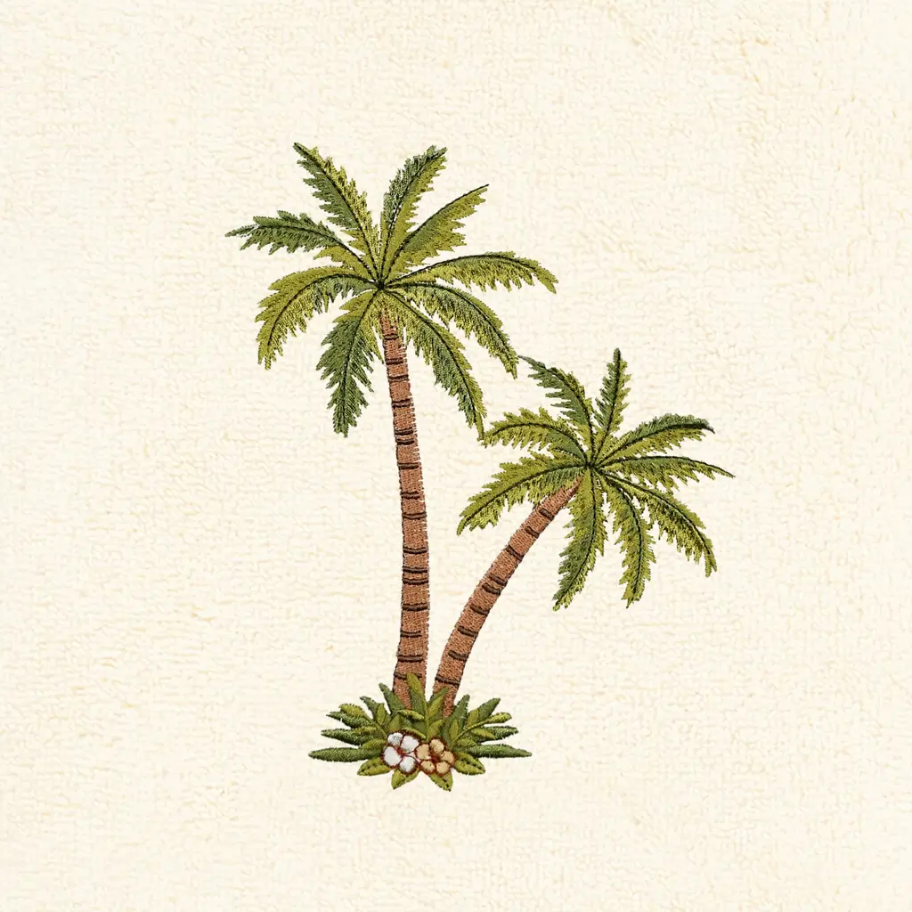 Your decorations are not complete without island style embroidered towels for the comfort of your family and guests. The PALMERA Towels feature swaying palm trees and are trimmed with a matching lustrous border. Cloud soft and super absorbent, these luxurious, durable towels keep their plush appearance after washing. This collection is available in 8 elegant colors: White, Beige, Blush, Aqua, Silver, Cocoa, Charcoal, and Marine. The PALMERA Towel Collection brings a tropical spirit and richness to your home decor and makes a great gift!