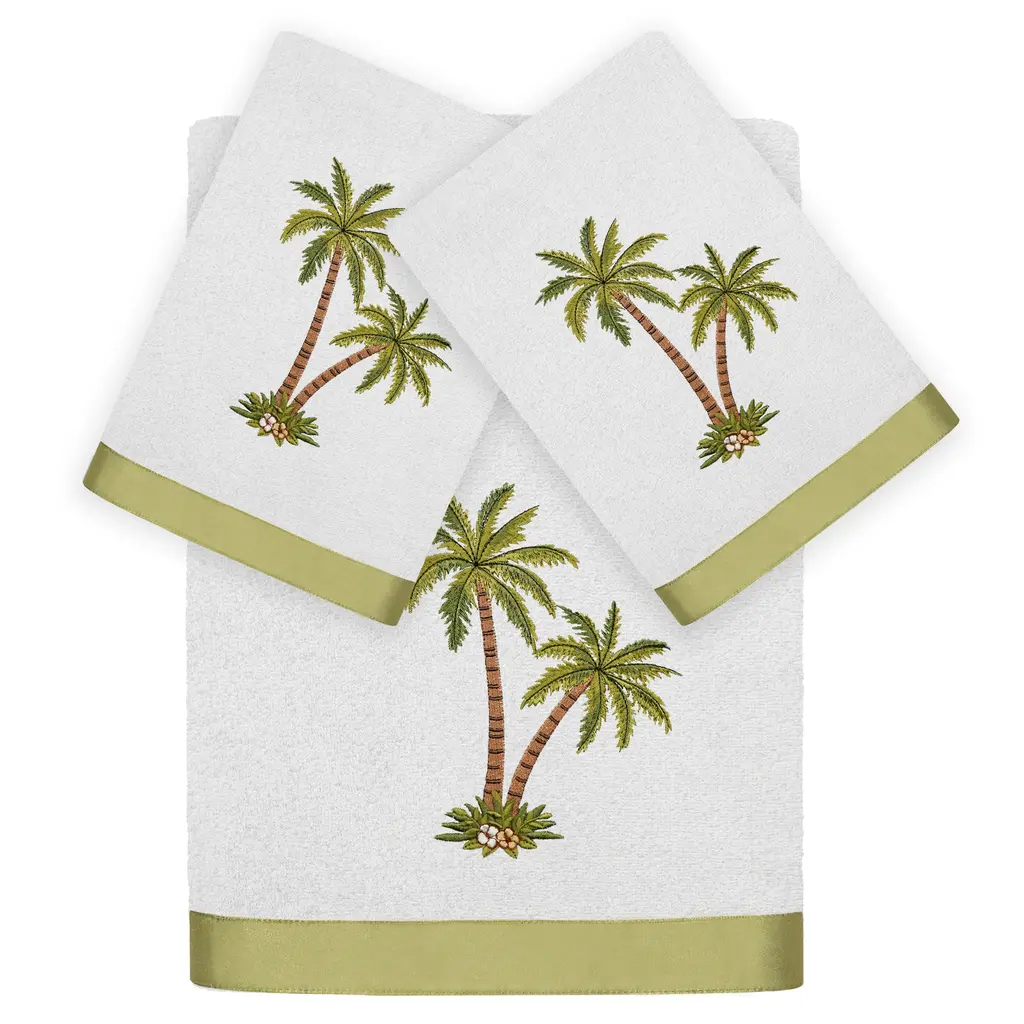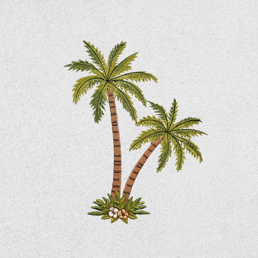 Your decorations are not complete without island style embroidered towels for the comfort of your family and guests. The PALMERA Towels feature swaying palm trees and are trimmed with a matching lustrous border. Cloud soft and super absorbent, these luxurious, durable towels keep their plush appearance after washing. This collection is available in 8 elegant colors: White, Beige, Blush, Aqua, Silver, Cocoa, Charcoal, and Marine. The PALMERA Towel Collection brings a tropical spirit and richness to your home decor and makes a great gift!