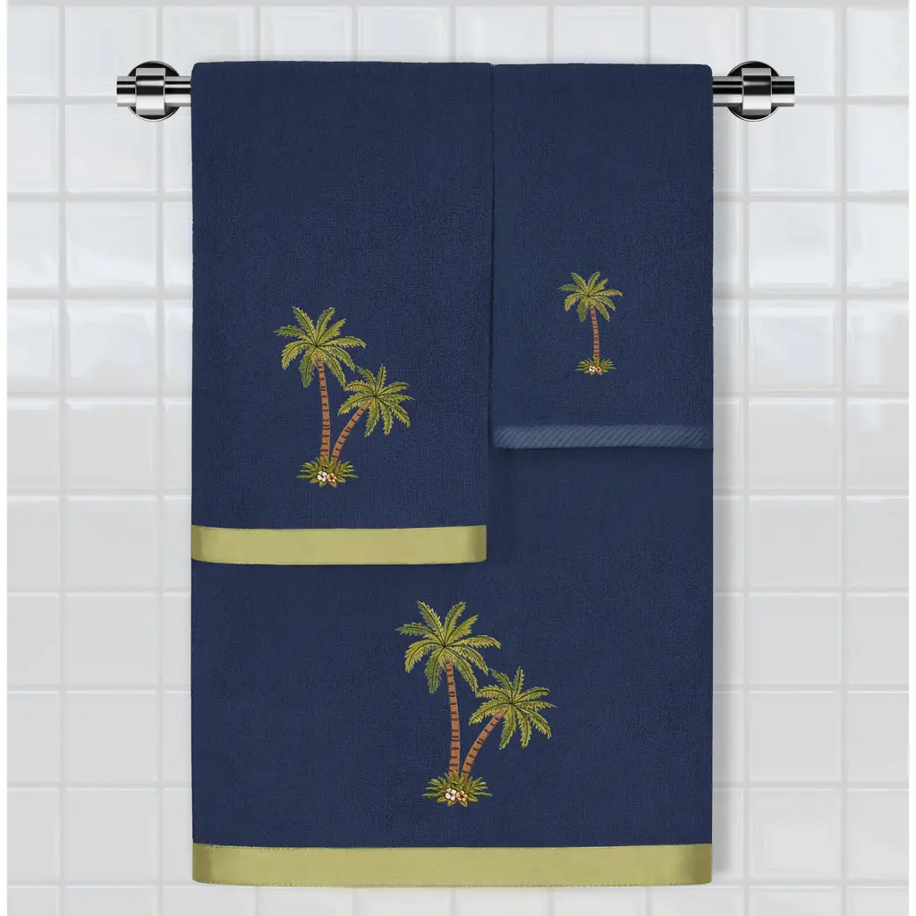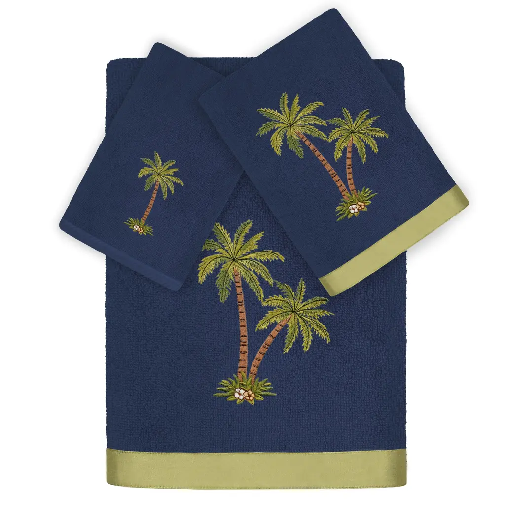 Your decorations are not complete without island style embroidered towels for the comfort of your family and guests. The PALMERA Towels feature swaying palm trees and are trimmed with a matching lustrous border. Cloud soft and super absorbent, these luxurious, durable towels keep their plush appearance after washing. This collection is available in 8 elegant colors: White, Beige, Blush, Aqua, Silver, Cocoa, Charcoal, and Marine. The PALMERA Towel Collection brings a tropical spirit and richness to your home decor and makes a great gift!