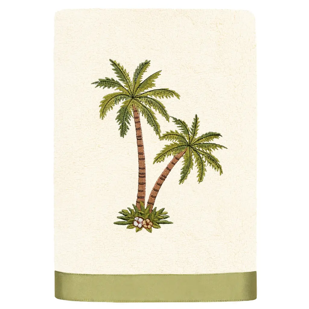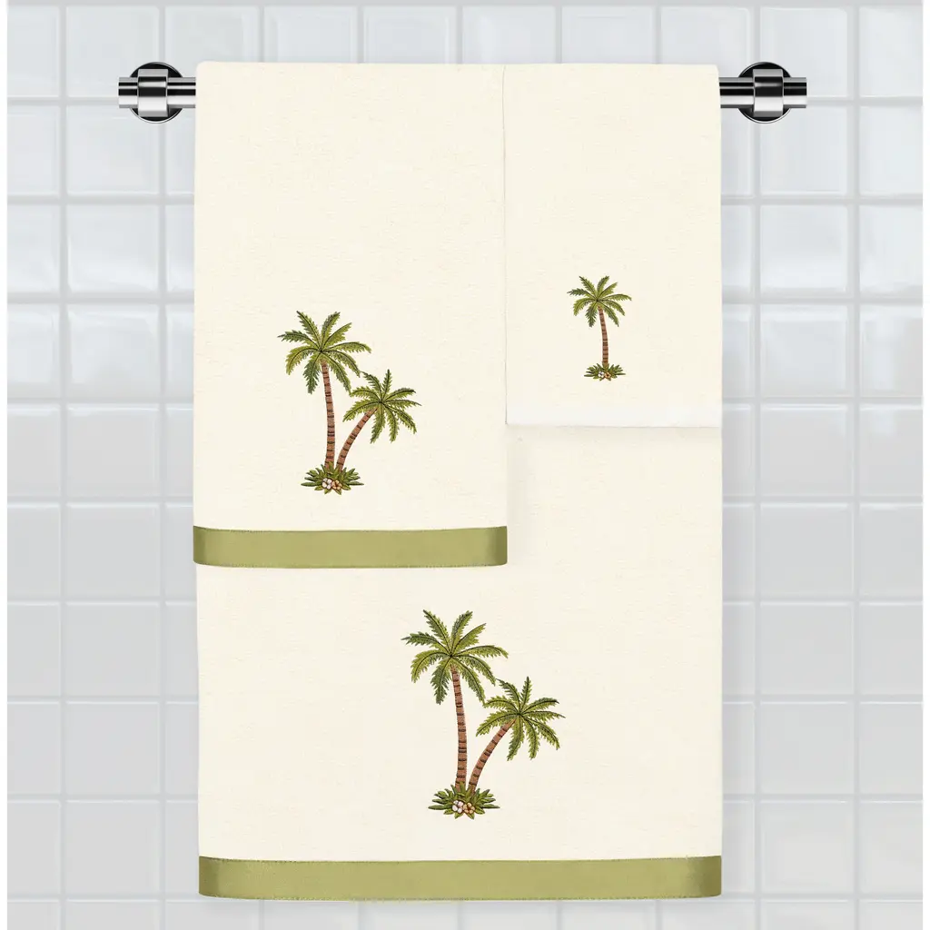 Your decorations are not complete without island style embroidered towels for the comfort of your family and guests. The PALMERA Towels feature swaying palm trees and are trimmed with a matching lustrous border. Cloud soft and super absorbent, these luxurious, durable towels keep their plush appearance after washing. This collection is available in 8 elegant colors: White, Beige, Blush, Aqua, Silver, Cocoa, Charcoal and Marine. The PALMERA Towel Collection brings a tropical spirit and richness to your home decor and makes a great gift!