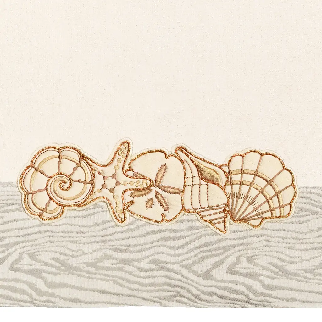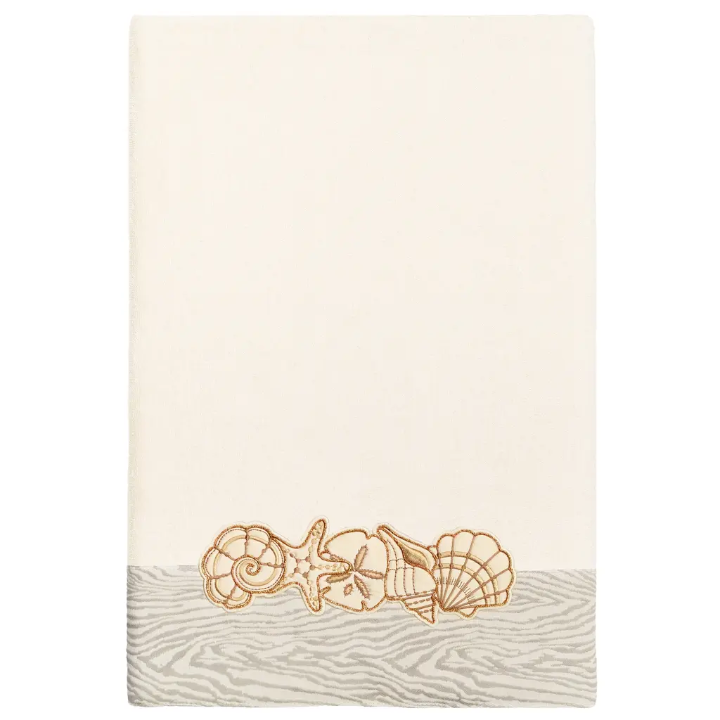Your bath decor is not complete without lovely embroidered towels by Authentic Hotel and Spa for the comfort of your family and guests. The Shell Row towels feature sparkling applique seashells on a weathered woodgrain pattern jacquard border. Cloud soft and super absorbent, these luxurious, durable towels keep their plush appearance after washing. This collection is available in 8 elegant colors: White, Beige, Blush, Aqua, Silver, Cocoa, Charcoal and Marine. The Shell Row Towel Collection brings seaside spirit and richness to your home decor and makes a great gift. Note: Due to variations in computer screen resolutions, slight color differences may exist between images provided and actual product.Embroidered Seashell design100% Premium Turkish CottonSuperbly absorbent and quick dryingAvailable in 8 elegant colorsMachine wash cold, No bleach, line dry or dry cleanSet includes 2 bath towels (27" x 54")Made in TurkeyProudly Embellished in USA