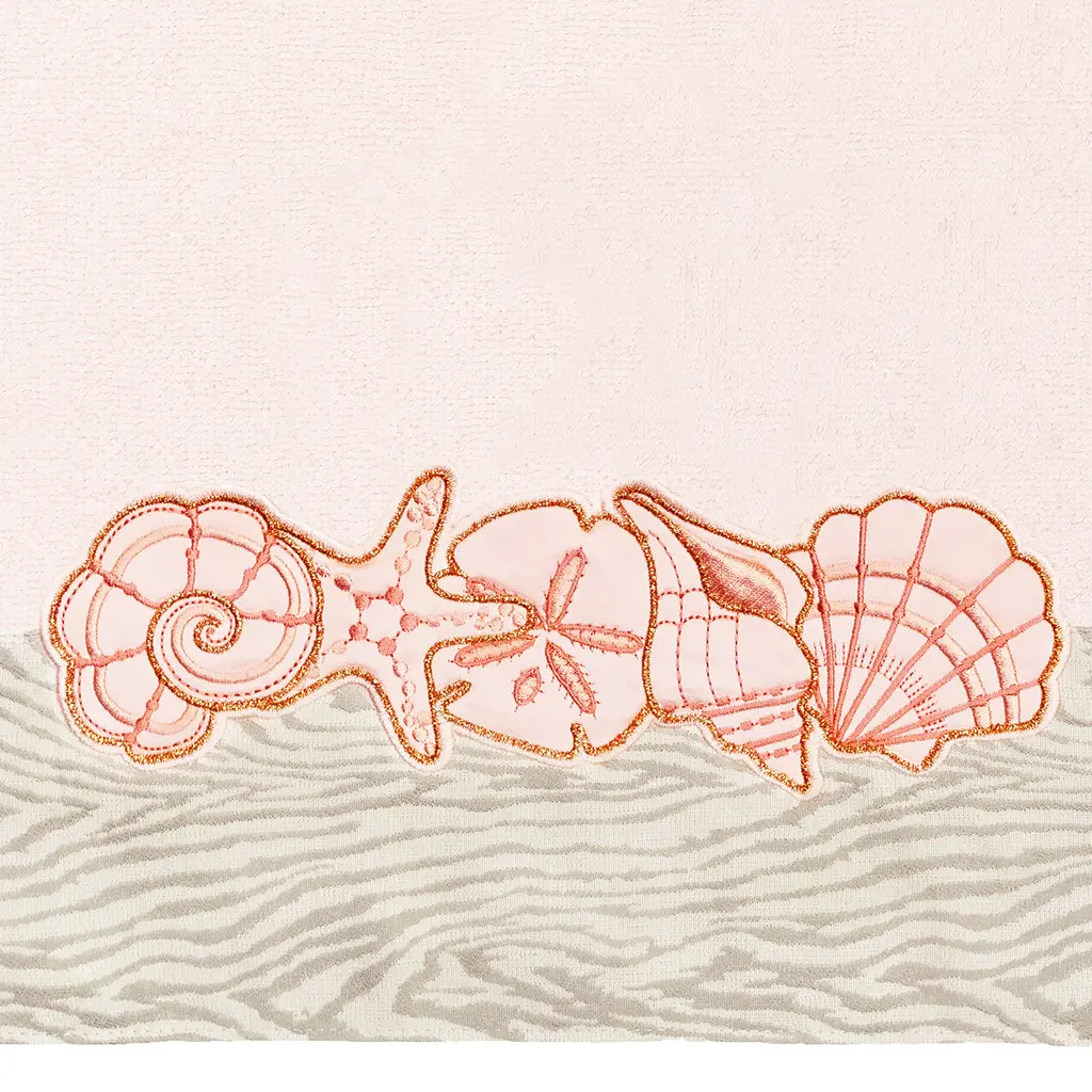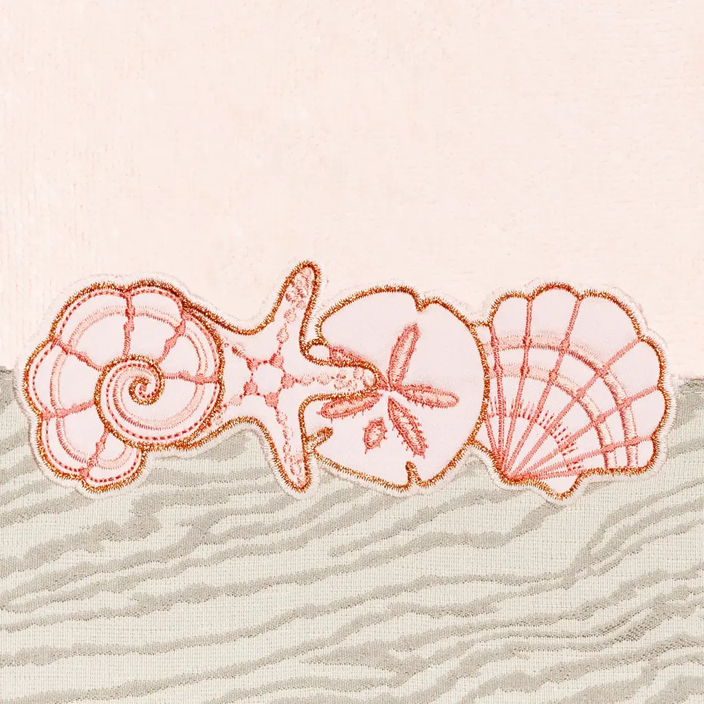 Your bath decor is not complete without beautiful embroidered towels by Authentic Hotel and Spa for the comfort of your family and guests. The Shell Row towels feature sparkling applique seashells on a weathered woodgrain pattern jacquard border. Cloud soft and super absorbent, these luxurious, durable towels keep their plush appearance after washing. This collection is available in 8 elegant colors: White, Beige, Blush, Aqua, Silver, Cocoa, Charcoal and Marine. The Shell Row Towel Collection brings seaside spirit and richness to your home decor and makes a great gift. Note: Due to variations in computer screen resolutions, slight color differences may exist between images provided and actual product.Embroidered Seashell design100% Premium Turkish CottonSuperbly absorbent and quick dryingAvailable in 8 elegant colorsMachine wash cold, No bleach, line dry or dry cleanSet includes 1 bath towel (27" x 54") / 2 hand towels (16" x 30")Made in TurkeyProudly Embellished in USA