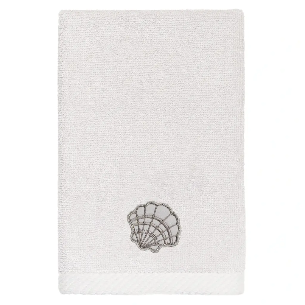Your bath decor is not complete without lovely embroidered towels by Authentic Hotel and Spa for the comfort of your family and guests. The Shell Row towels feature sparkling applique seashells on a weathered woodgrain pattern jacquard border. Cloud soft and super absorbent, these luxurious, durable towels keep their plush appearance after washing. This collection is available in 8 elegant colors: White, Beige, Blush, Aqua, Silver, Cocoa, Charcoal and Marine. The Shell Row Towel Collection brings seaside spirit and richness to your home decor and makes a great gift. Note: Due to variations in computer screen resolutions, slight color differences may exist between images provided and actual product.Embroidered Seashell design100% Premium Turkish CottonSuperbly absorbent and quick dryingAvailable in 8 elegant colorsMachine wash cold, No bleach, line dry or dry cleanSet includes 1 bath towel (27" x 54") / 1 hand towel (16" x 30") / 1 fingertip towel (11" x 18")Made in TurkeyProudly Embellished in USA