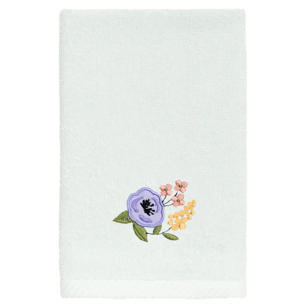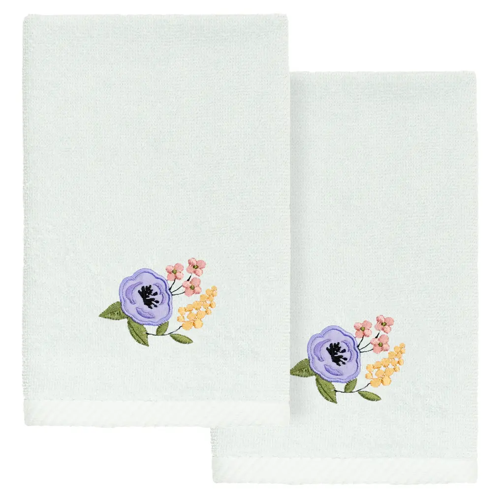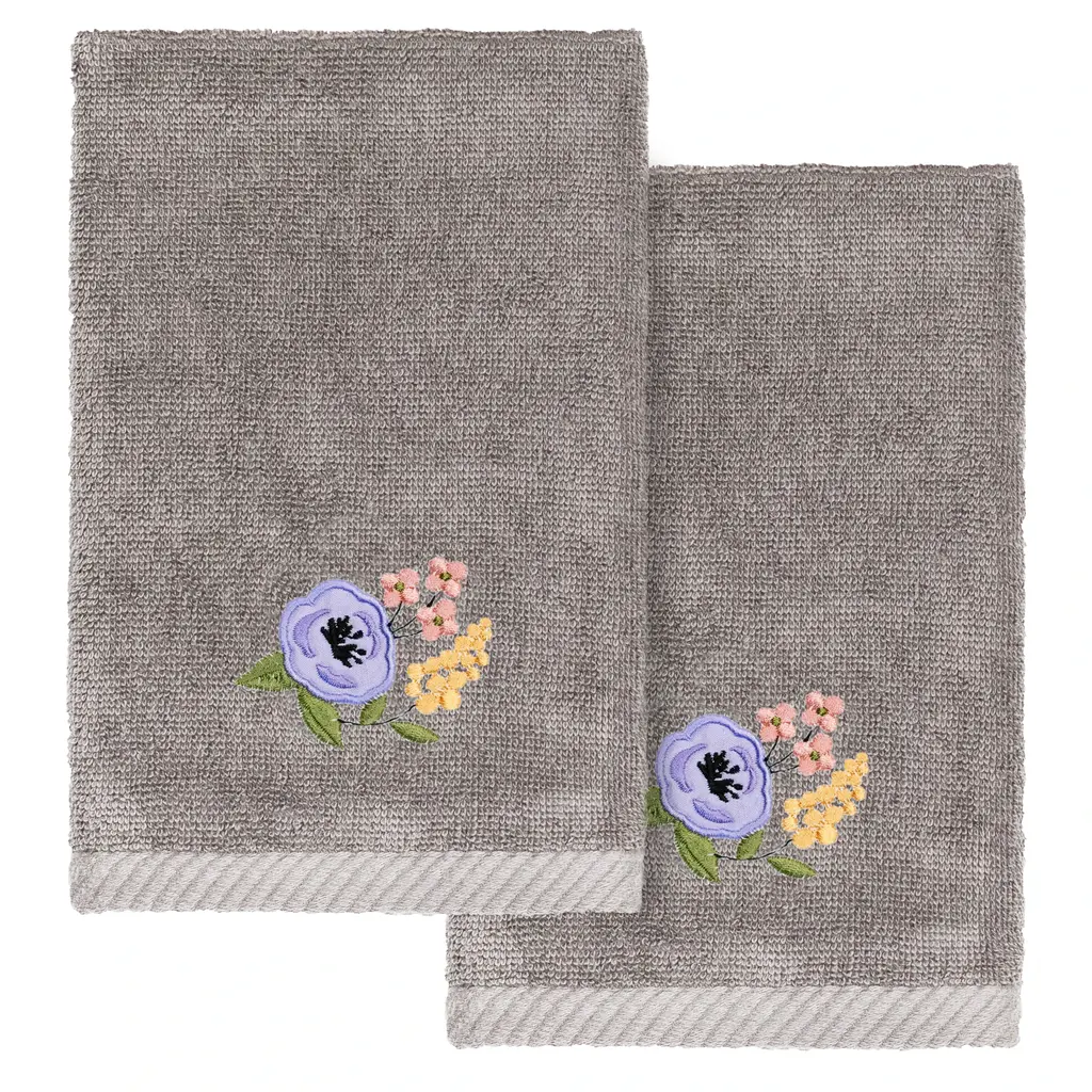 Create a mood of fresh charm in your bath with the Verano Embellished Towel Collection by Authentic Hotel and Spa. These towels feature an applique embroidered bouquet of vibrant flowers and are trimmed by a lustrous border. Cloud soft and super absorbent, these luxurious, durable towels keep their plush appearance after washing. This collection is available in 8 elegant colors: White, Beige, Blush, Aqua, Silver, Cocoa, Charcoal and Marine. The Verano Towel Collection brings a bright spirit and richness to your home decor and makes a great gift! Note: Due to variations in computer screen resolutions, slight color differences may exist between images provided and actual product.Embroidered Bouquet design100% Premium Turkish CottonSuperbly absorbent and quick dryingAvailable in 8 elegant colorsMachine wash cold, No bleach, line dry or dry cleanSet includes 2 fingertip towels (11" x 18")Made in TurkeyProudly Embellished in USA