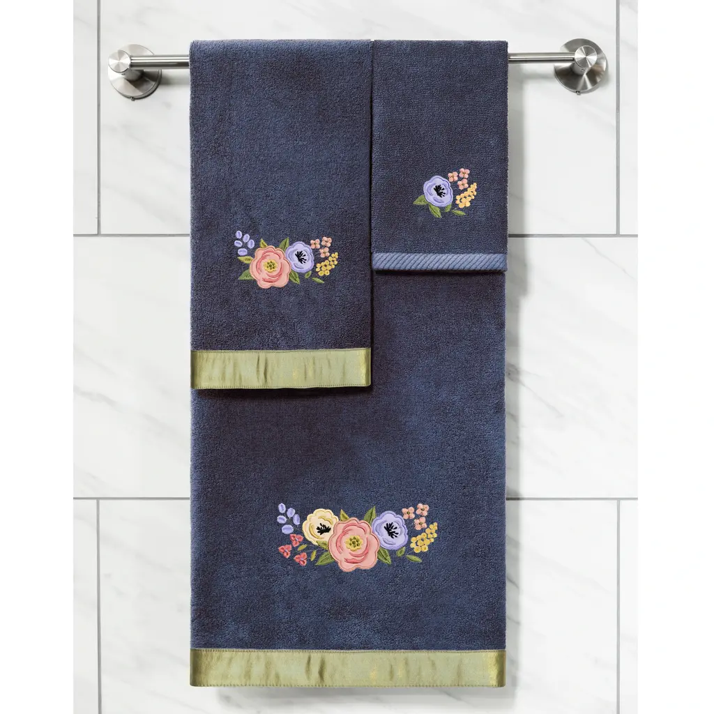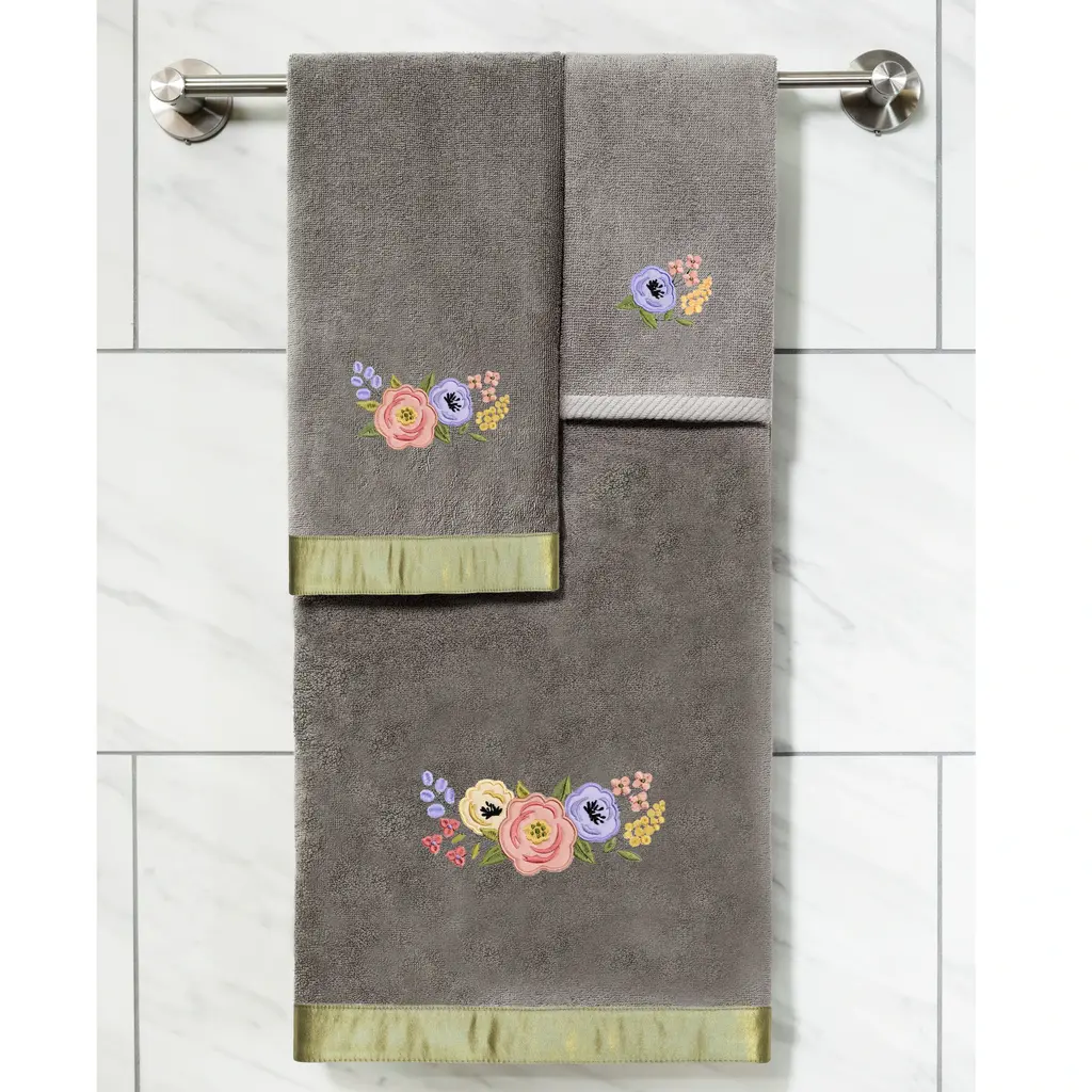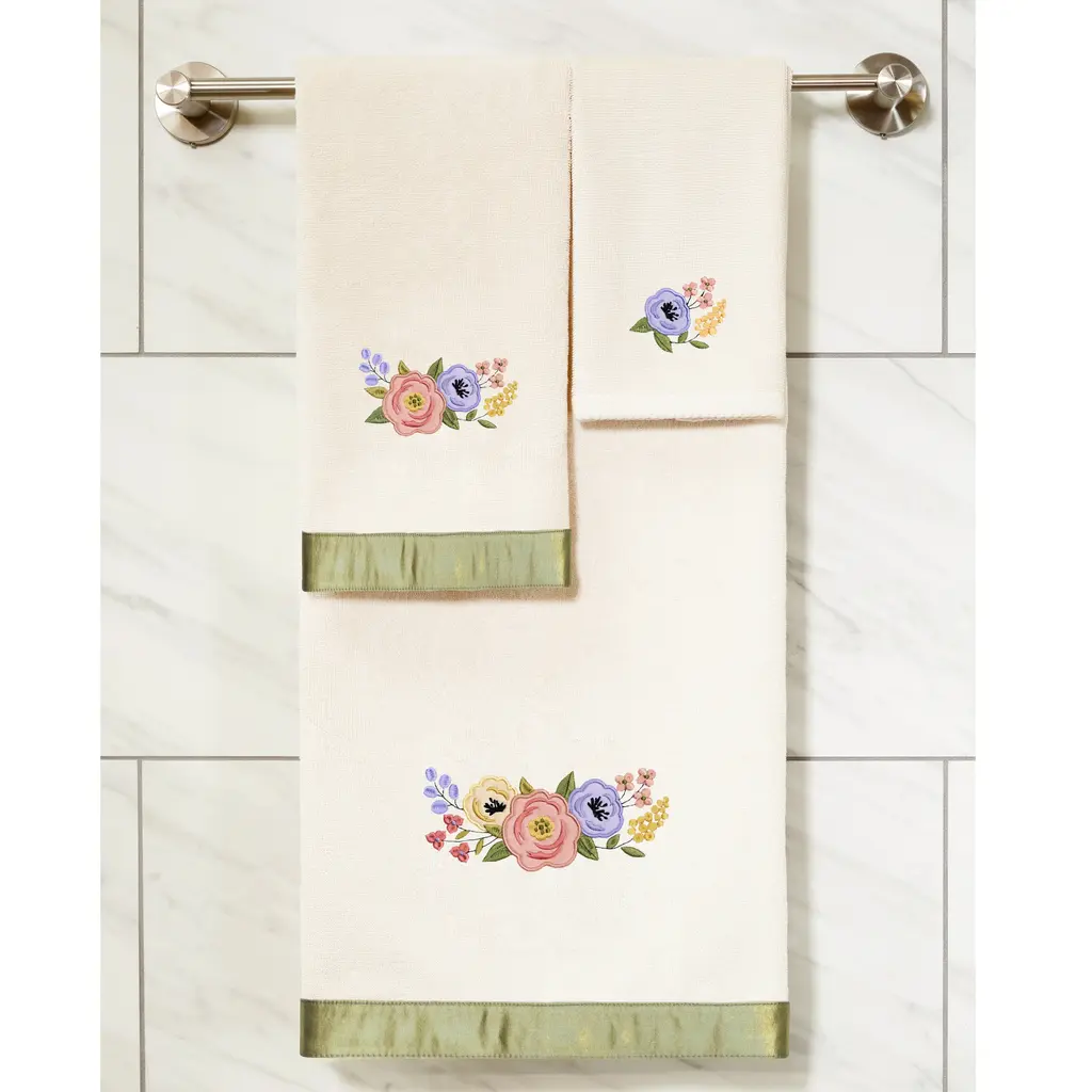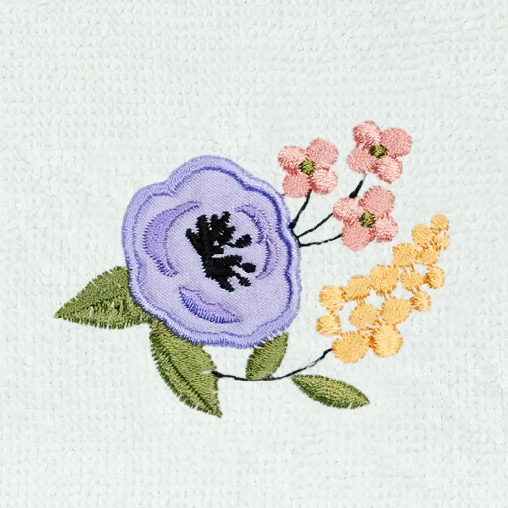 Create a mood of fresh charm in your bath with the Verano Embellished Towel Collection by Authentic Hotel and Spa. These towels feature an applique embroidered bouquet of vibrant flowers and are trimmed by a lustrous border. Cloud soft and super absorbent, these luxurious, durable towels keep their plush appearance after washing. This collection is available in 8 elegant colors: White, Beige, Blush, Aqua, Silver, Cocoa, Charcoal and Marine. The Verano Towel Collection brings a bright spirit and richness to your home decor and makes a great gift! Note: Due to variations in computer screen resolutions, slight color differences may exist between images provided and actual product.Embroidered Bouquet design100% Premium Turkish CottonSuperbly absorbent and quick dryingAvailable in 8 elegant colorsMachine wash cold, No bleach, line dry or dry cleanSet includes 2 fingertip towels (11" x 18")Made in TurkeyProudly Embellished in USA