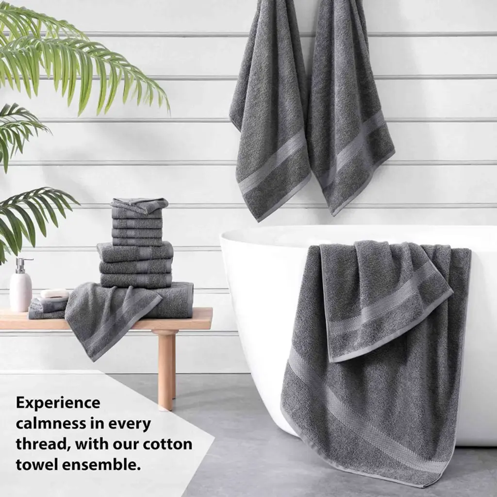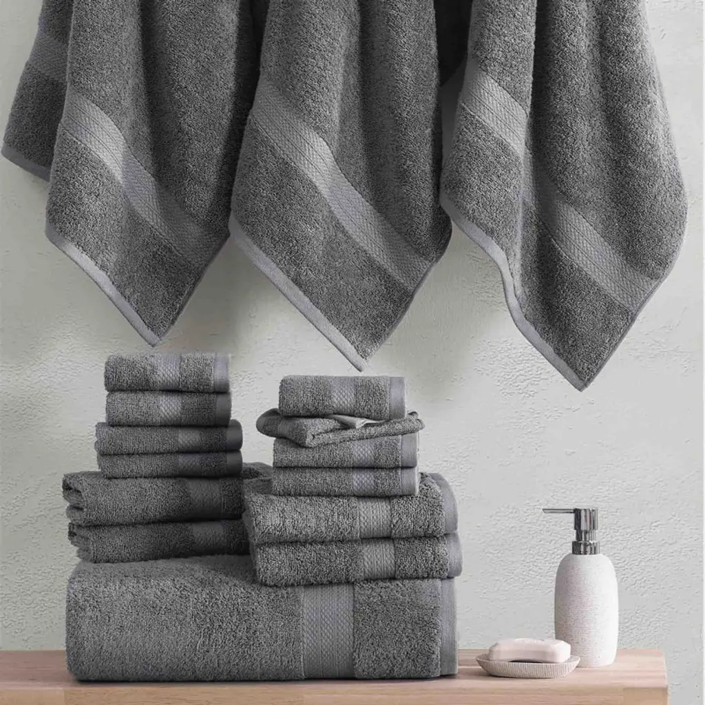 Bagokie 16 Piece Premium Cotton Bath Towel Set, Cool Grey
