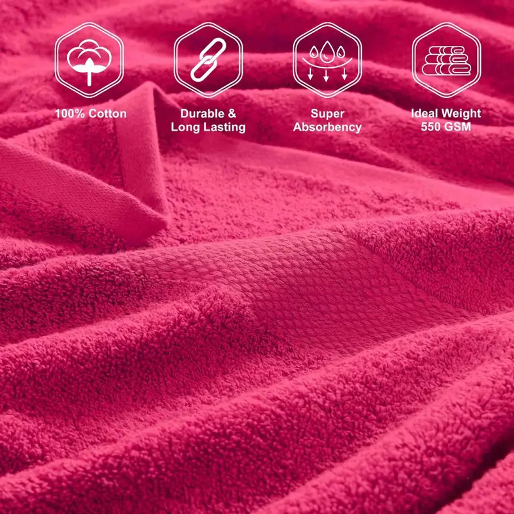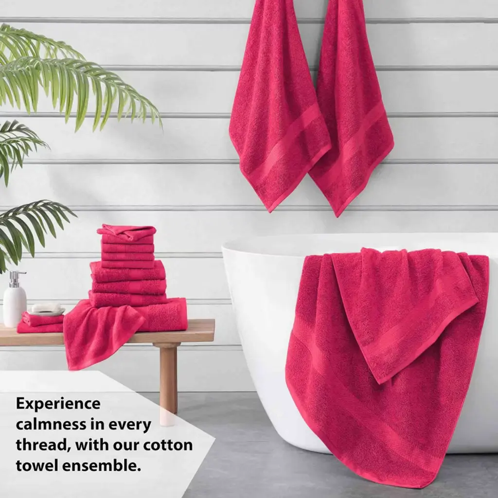 Bagokie 16 Piece Premium Cotton Bath Towel Set, Fuchsia