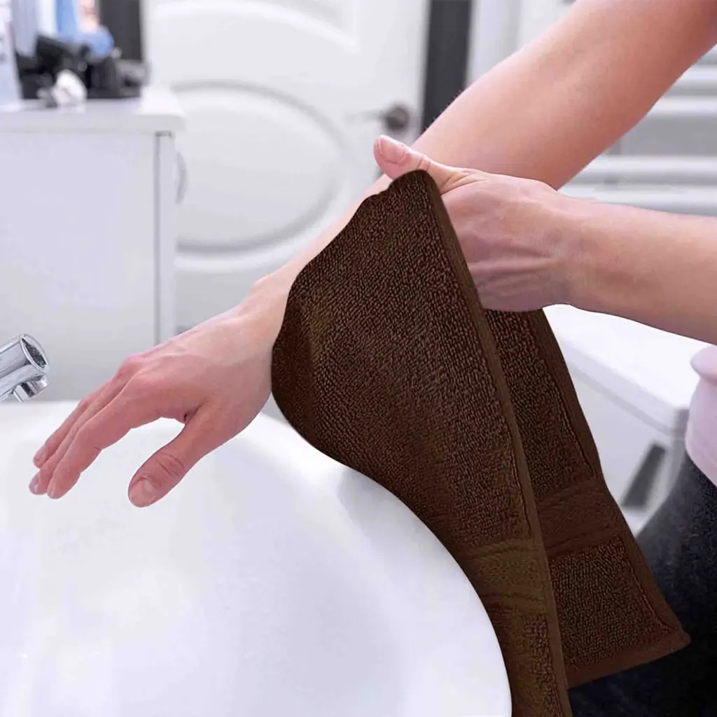 Bagokie 6 Piece Cotton Hand Towel Set, Dark Brown