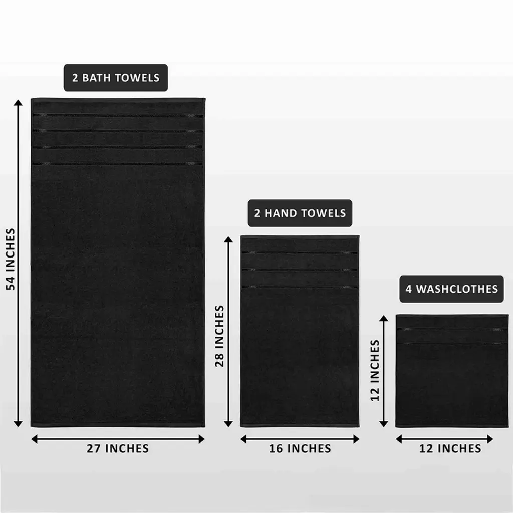 Bagokie 8 Piece Cotton Blend Towel Set, Black