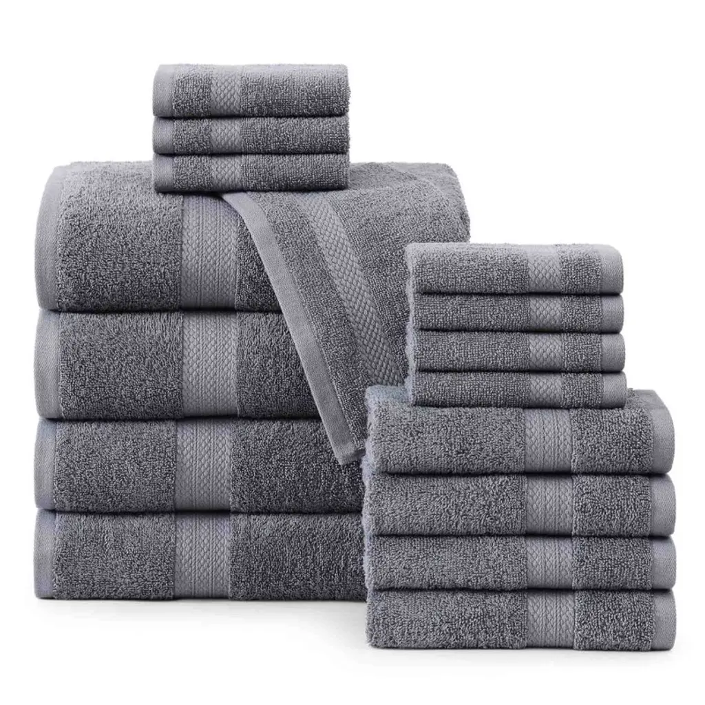 Bagokie 8 Piece Cotton Blend Towel Set, Grey