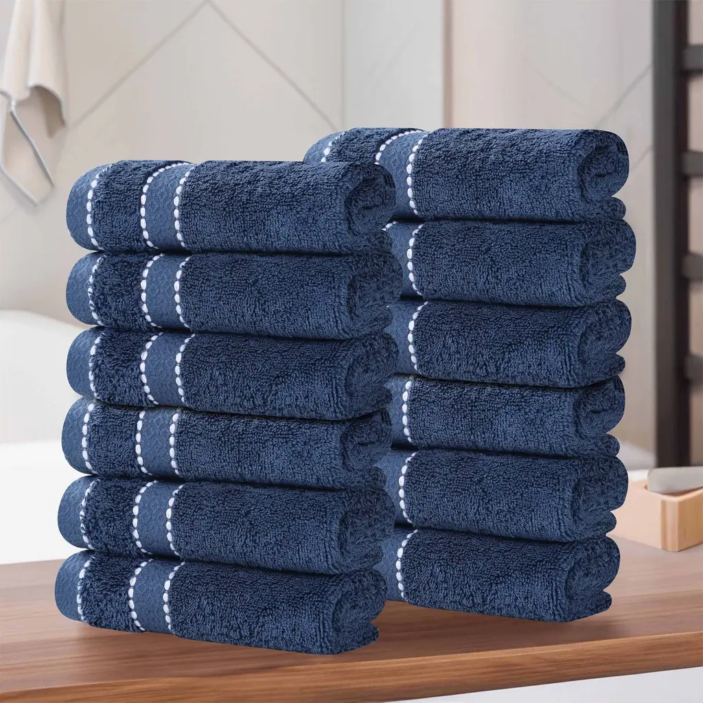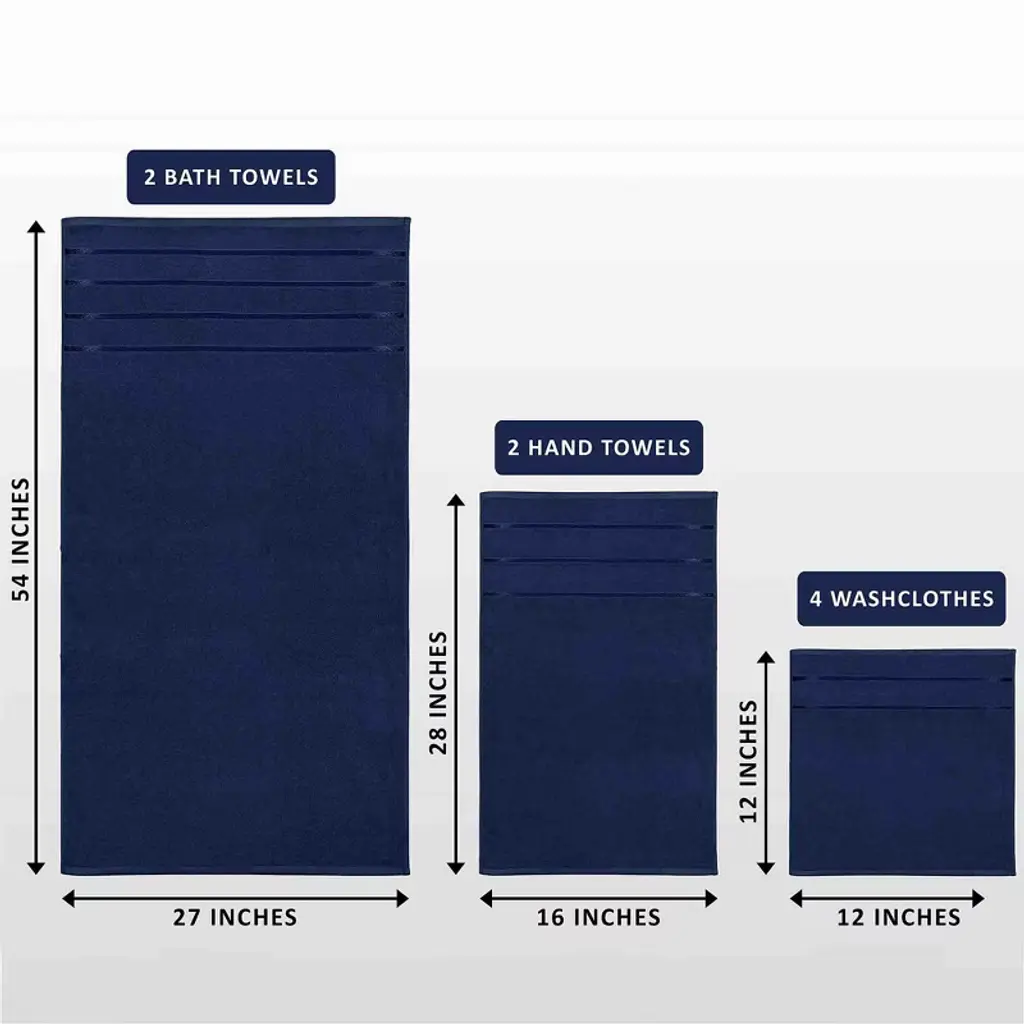 Bagokie 8 Piece Cotton Blend Towel Set, Navy