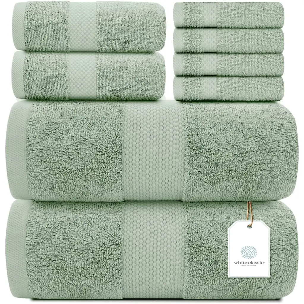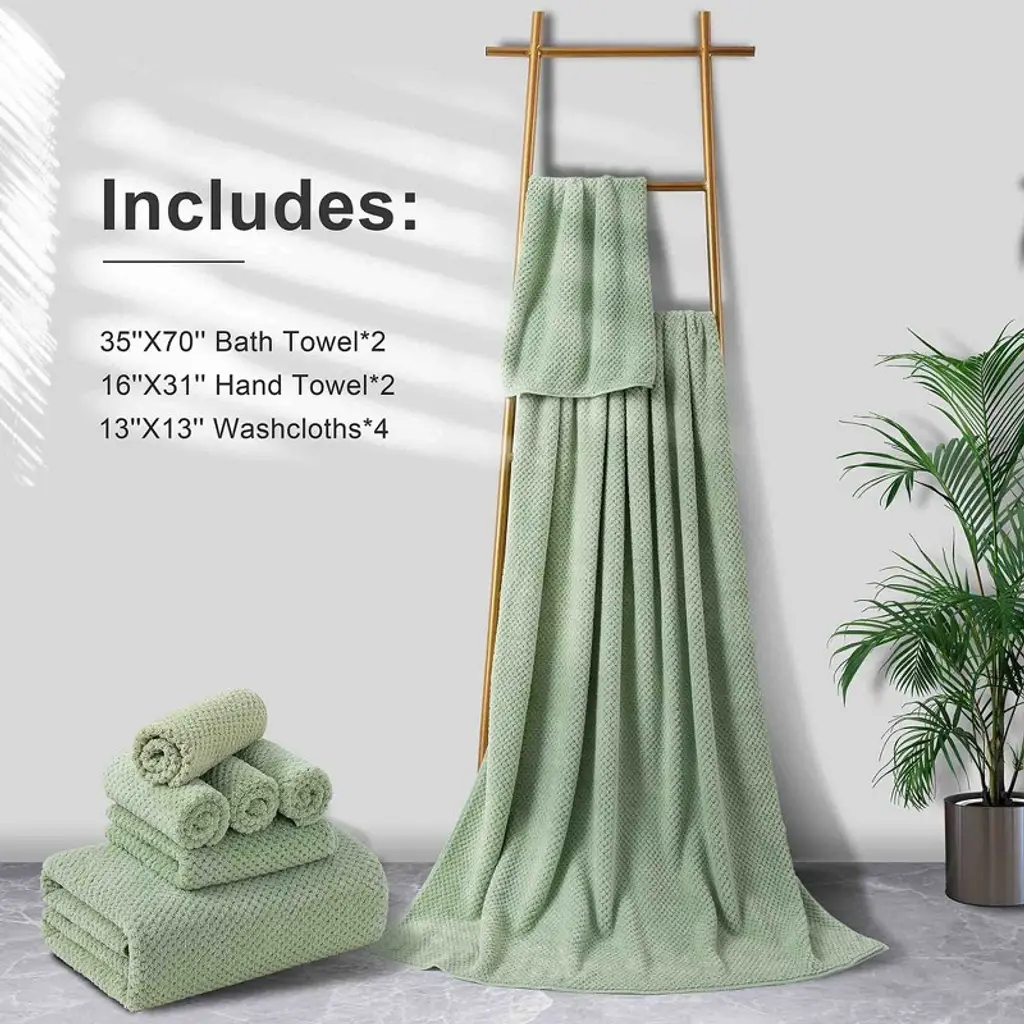 Bagokie 8Pc Microfiber Bath Towel Set, Green