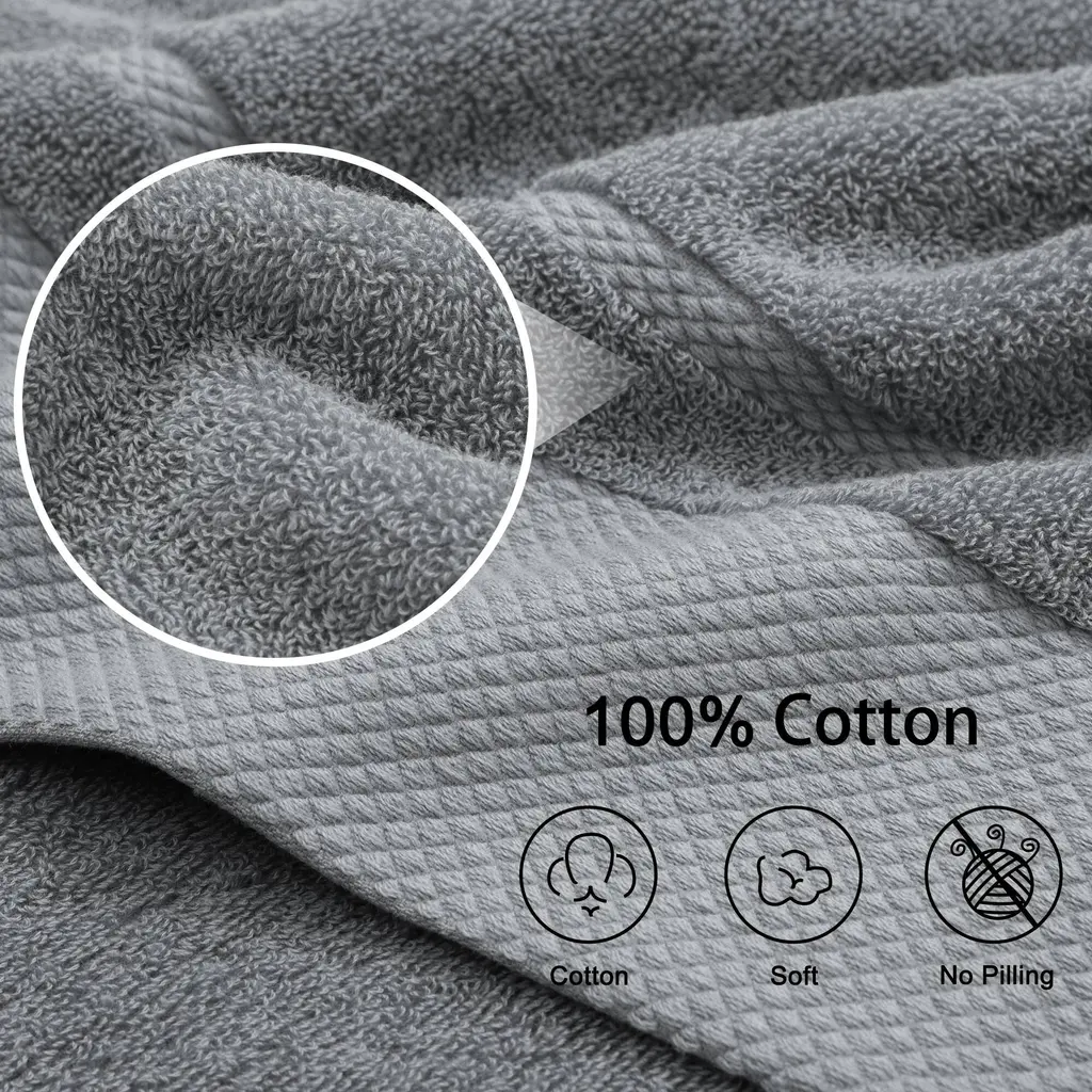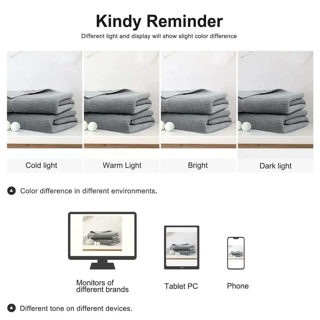 We have used long yarn loops which make our towel set soaks up water fast and make them super absorbent and soft. With reinforced double-stitched hems to prevent fraying and tearing, ensuring long-lasting durability. Provide users with all the required bathroom drying needs either to dry your body or wrap around your hair. Perfect as Home Towels, Spa Towels, Gym Towels, salon Towels, Pool Towels, hotel Towels, etc.Package Include: 4/2 x Bath TowelsMaterial: 100% CottonBath Towel Size: 70 x 140cm/27" x 54"Note:1. Due to the light and screen setting difference, the actual color of the item may be slightly different from the pictures.2. All dimensions are measured manually, thus please allow deviation (ranged at 1-3cm) due to different measuring methods and tools!