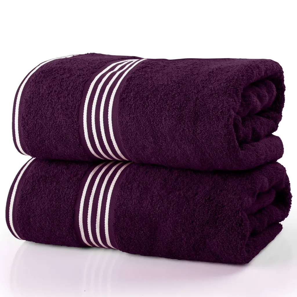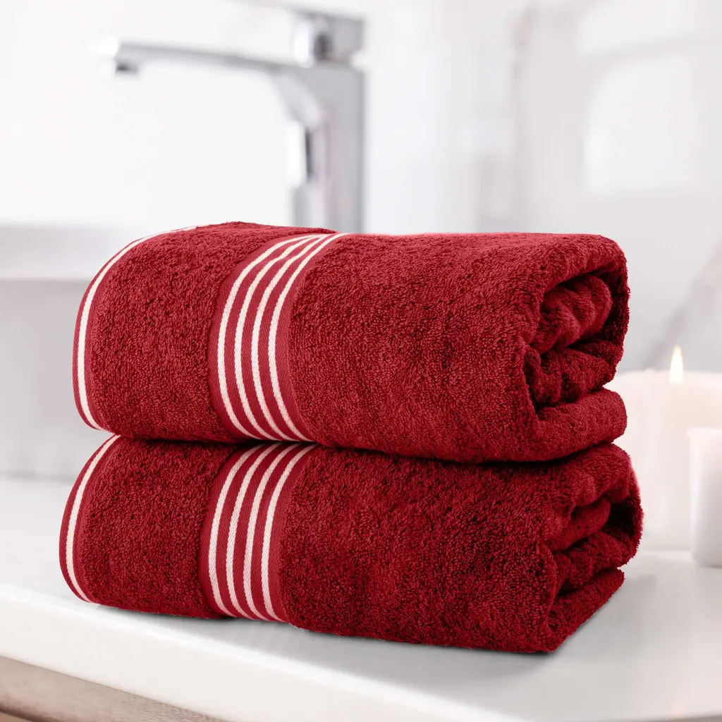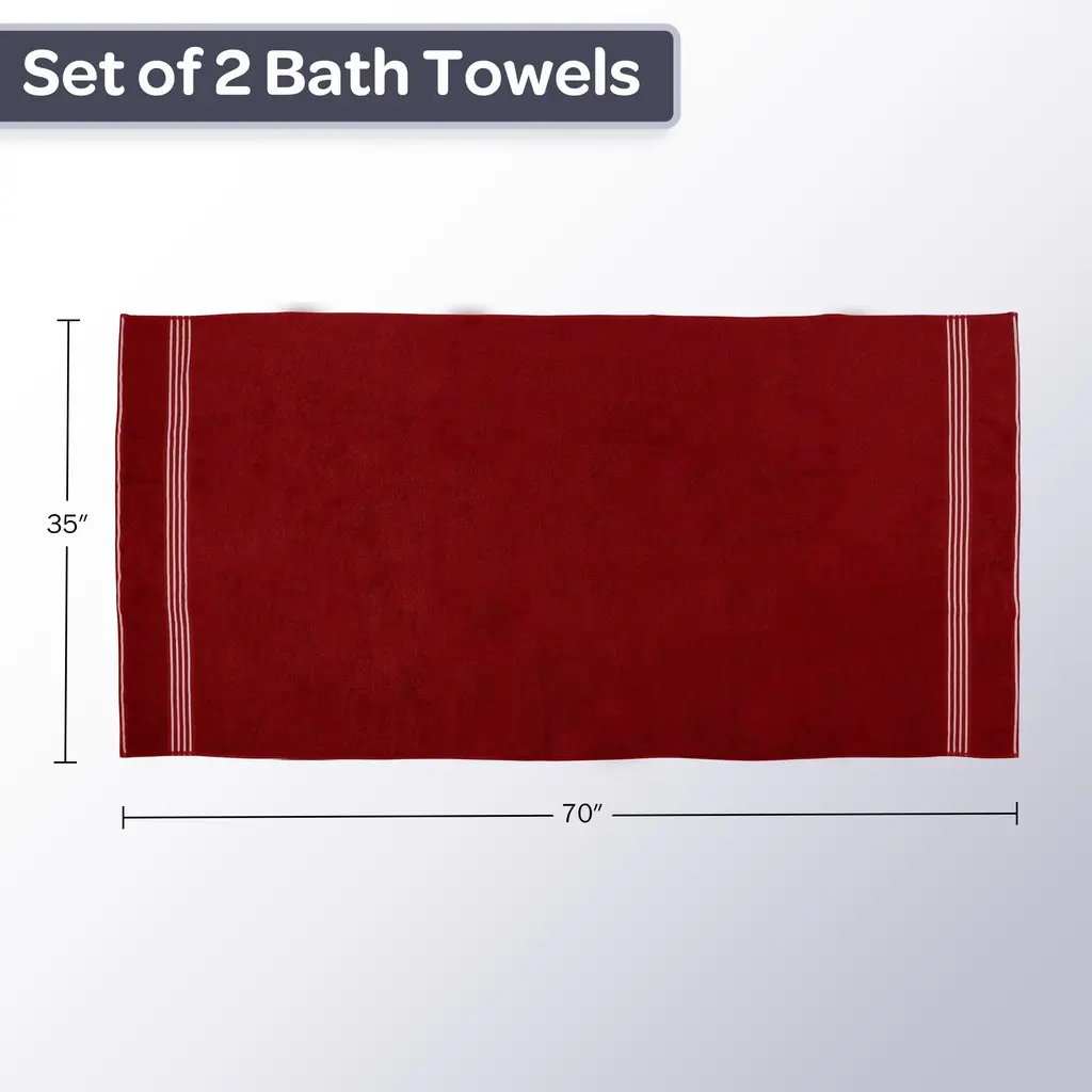 Bath Towels - 2Pc 500gsm 100% Cotton Towel Set 35x70in Extra Large Quick Drying Bath Towels By Lavish Home - Burgundy
