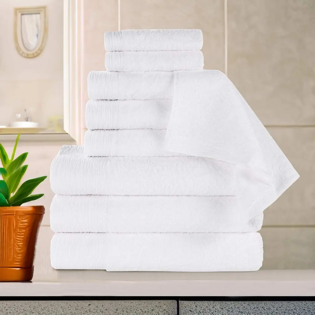 Bedvoyage Luxury Viscose From Bamboo Cotton Towel Set 8Pc - 8 Piece Set - White